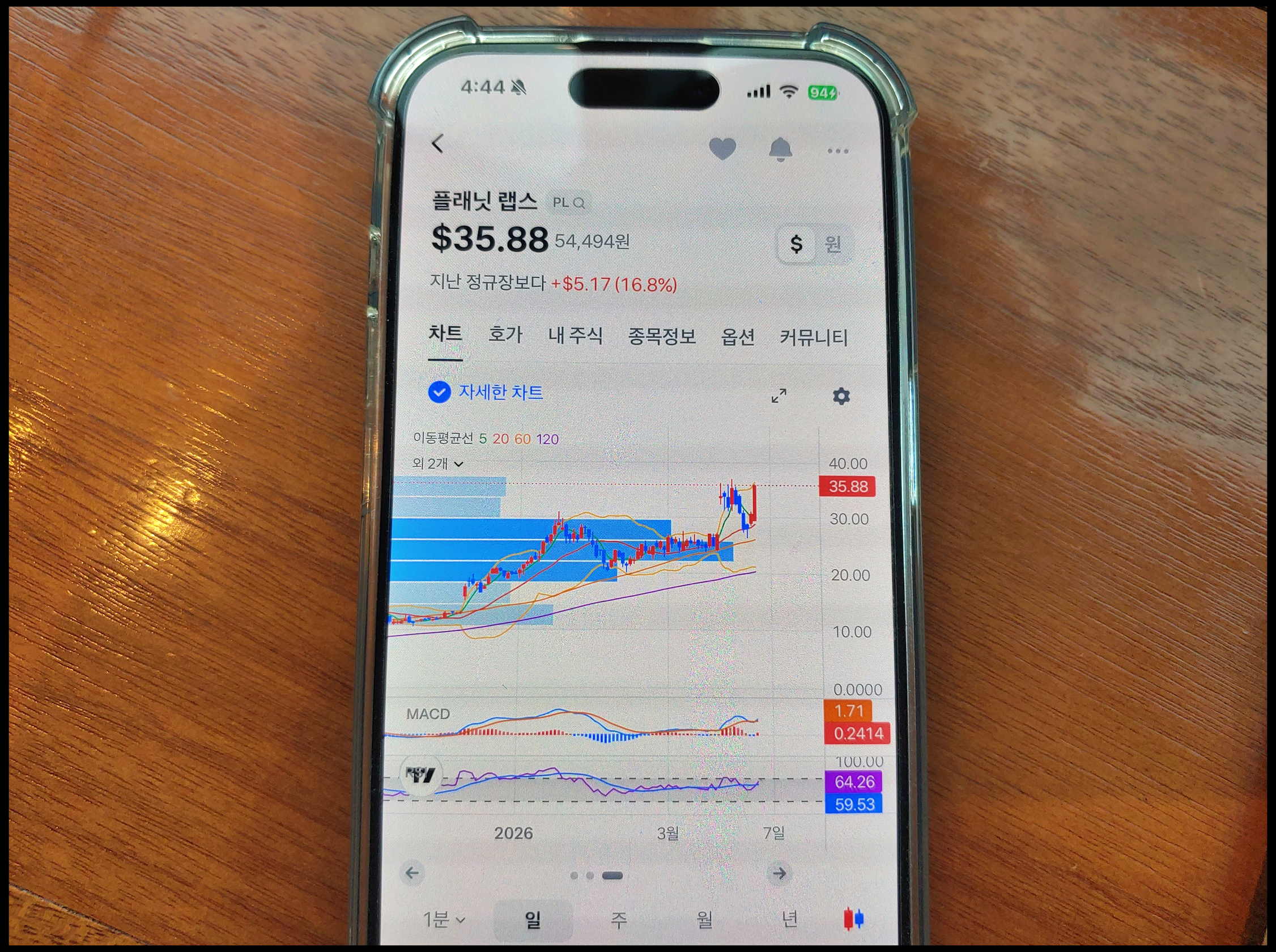 플래닛 랩스 스페이스X 관련주 미국 기업으로 거론되는 중입니다. 올해 1분기 내내 60일선과 120일선이 계속 올랐습니다. 볼린저 밴드 상단에 닿으면 20일 선 밑으로 빠지거나 또는 지지를 받으면서 다음 슈팅이 나오는 흐름이었습니다. 따라서 이 종목은 지금 신규 진입이 좋지 않습니다. 오히려 미국증시가 지금보다 안좋을 때를 지켜봐야 할 것 같습니다. 시장이 무너지면 종목들도 영향 받을 것입니다. 물론 이럴 때는 지수 위주로 보는 것이 좋습니다. 이 종목은 비록 적자 규모가 높아지는 중이나 오히려 주가 오름세 계속되는 이유는 스페이스X 상장 기대감 현재 진행형이기 때문입니다. / 사진 (C) 토스 앱