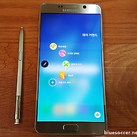 갤럭시노트5 메탈+강화유리 소재 조합이 매력적인 것은 분명하나 때때로 지문 및 손바닥으로 만졌던 자국 같은 것이 잘 묻는 단점이 있습니다. 사진을 보시면 후면 상단에 적혀있는 LTE 쪽에 저의 지문 및 손바닥이 묻었더군요. 갤럭시노트5 골드 플래티넘은 지문이 잘 묻습니다. 다른 색상은 제가 아직 실물로 못봤지만 '많은 분들이 주목하실' 골드 플래티넘은 지문 잘 묻는 색상임을 참고하실 필요가 있습니다. 갤럭시S6 & 갤럭시S6 엣지와 동일하게 나타나는 단점입니다. 저의 기억으로는 갤럭시S6 & 갤럭시S6 엣지 화이트 색상이 지문 잘 안묻었습니다. 하지만 화이트 색상 선호하는 사람은 많지 않겠죠.