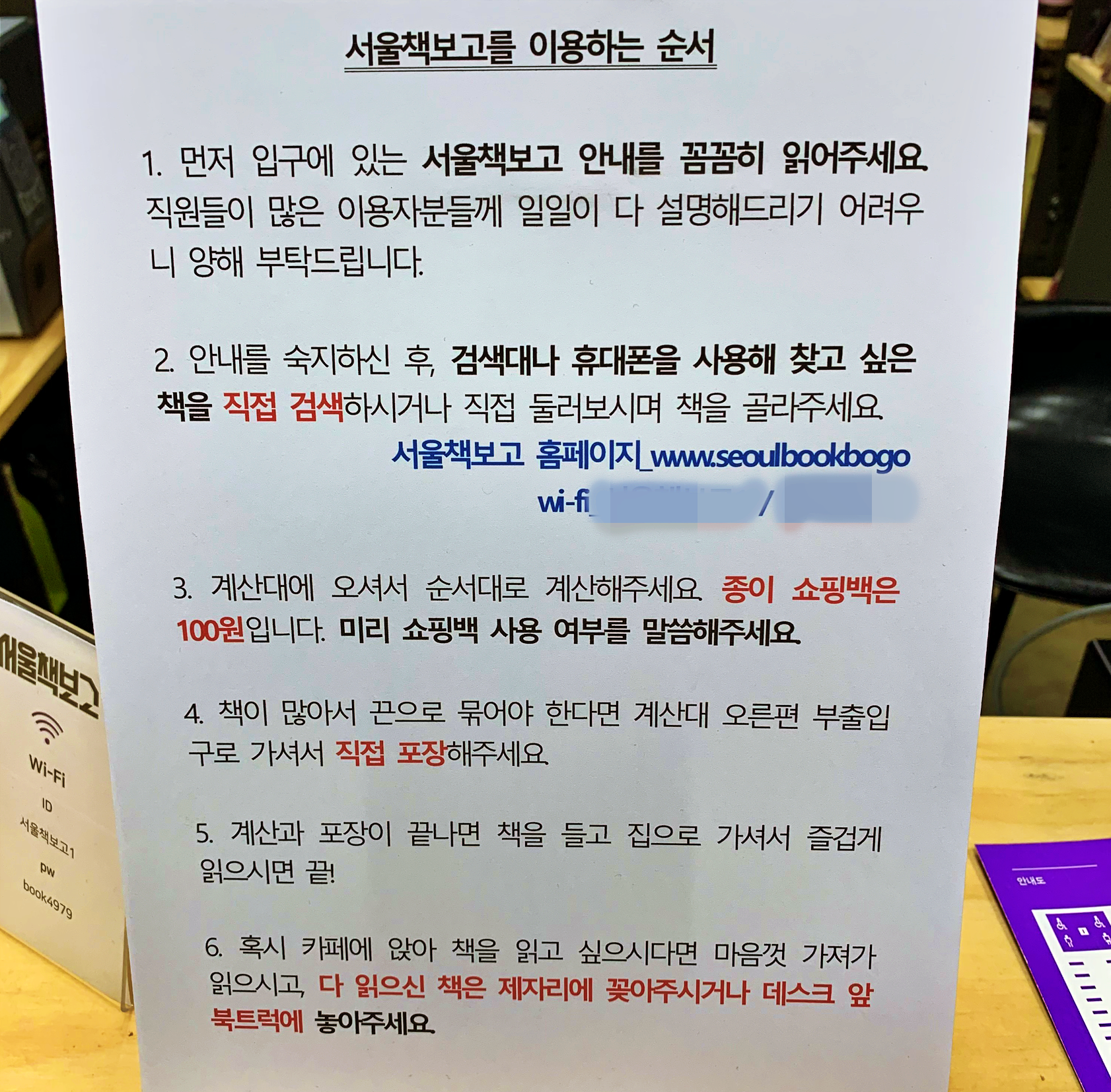 이곳은 와이파이 이용 가능합니다. 책에 대하여 이런 저런 정보를 알고 싶은 분들에게 유용합니다.