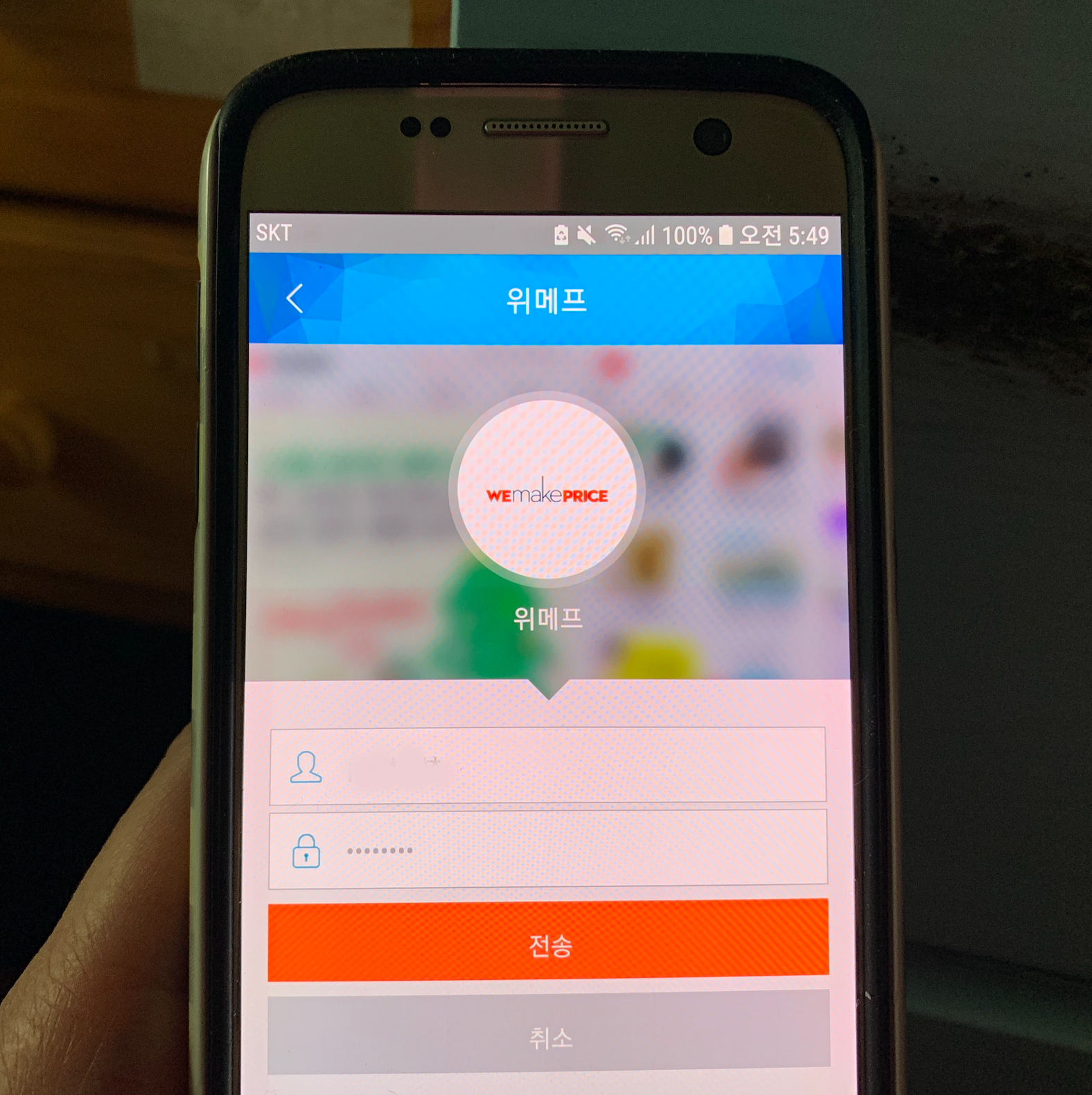 위메프 홈페이지에서 로그인을 시도했더니 '휴대폰간편로그인'이라는 아이콘이 뜹니다.