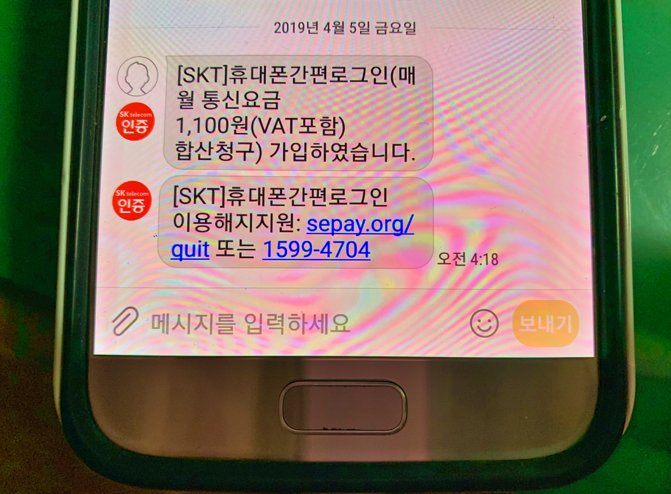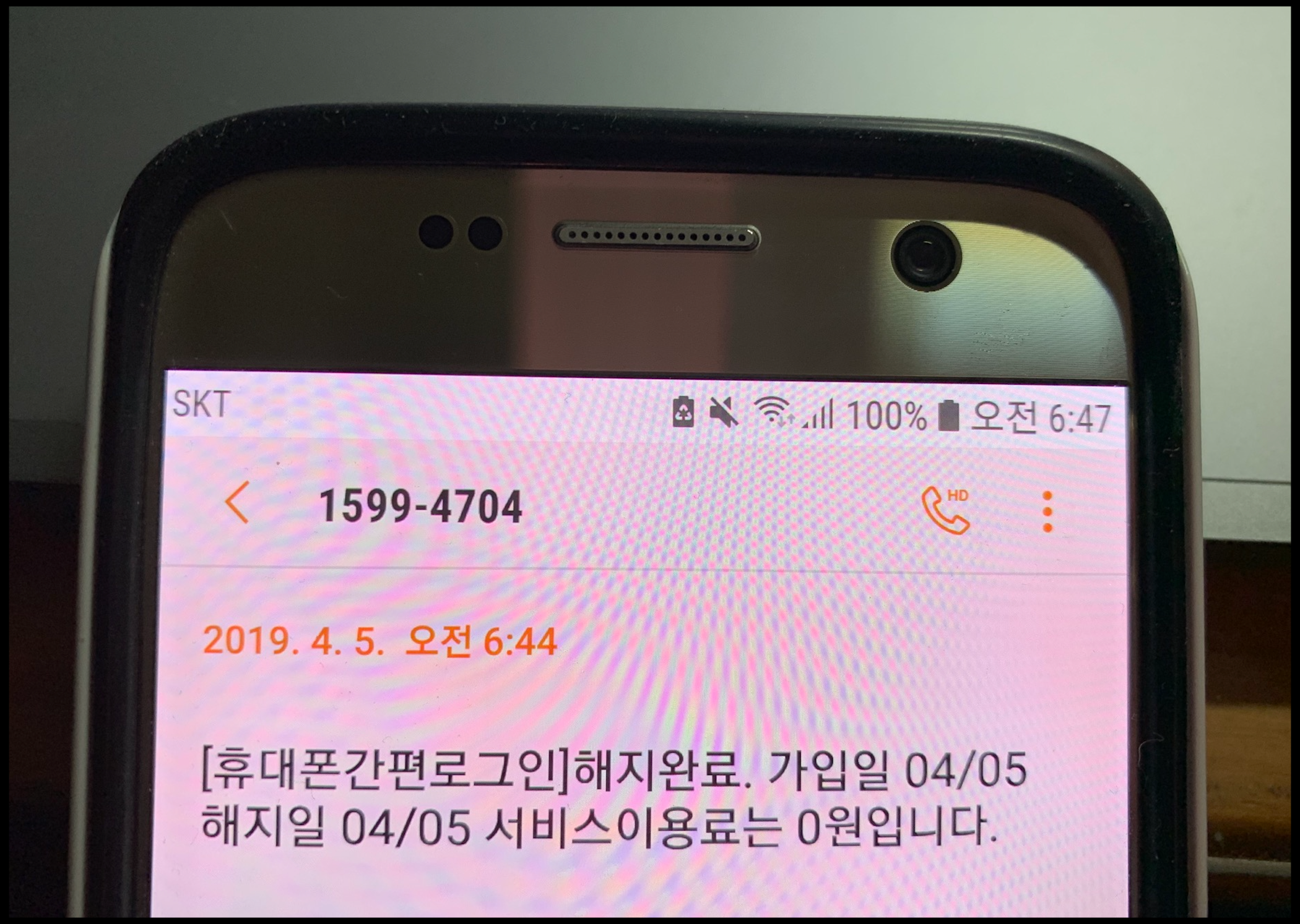 간편결제매니저/휴대폰간편로그인 해지 완료 시 고객센터 1599-4704 문자를 통해서 가입일, 해지일, 서비스사용료에 대한 안내를 받습니다. 저 같은 경우 같은 날에 가입 및 해지를 했기 때문에 서비스이용료가 0원으로 책정됐습니다. 간편결제매니저가 얼마나 편리한 서비스인지 실감하며 이 글을 마칩니다.
