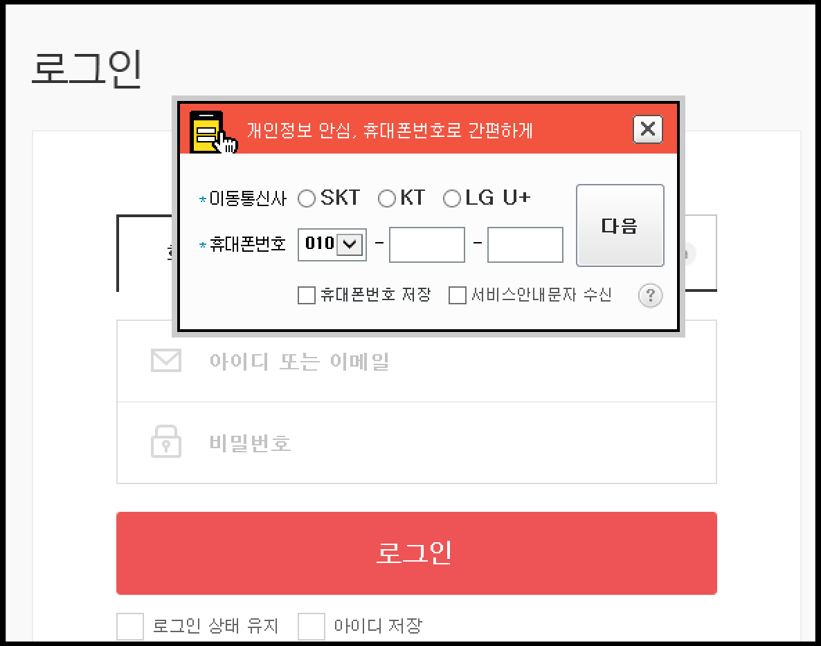 한국 최대의 포털 사이트 네이버도 휴대폰간편로그인 이용이 가능합니다. 사이트명에서 네이버 검색하니 실제로 뜨더군요.'