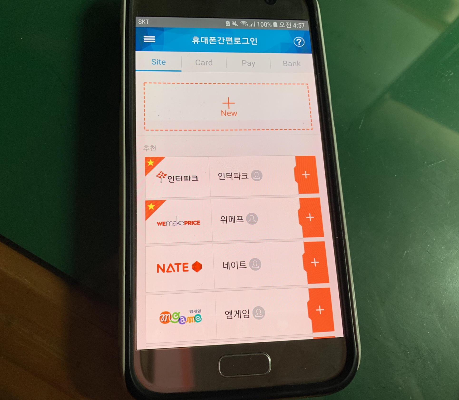 앱 메인에서 New를 누를 경우에는 서비스 가능한 사이트들이 뜹니다. 수많은 사이트에서 간편로그인이 된다는 것을 알 수 있습니다.