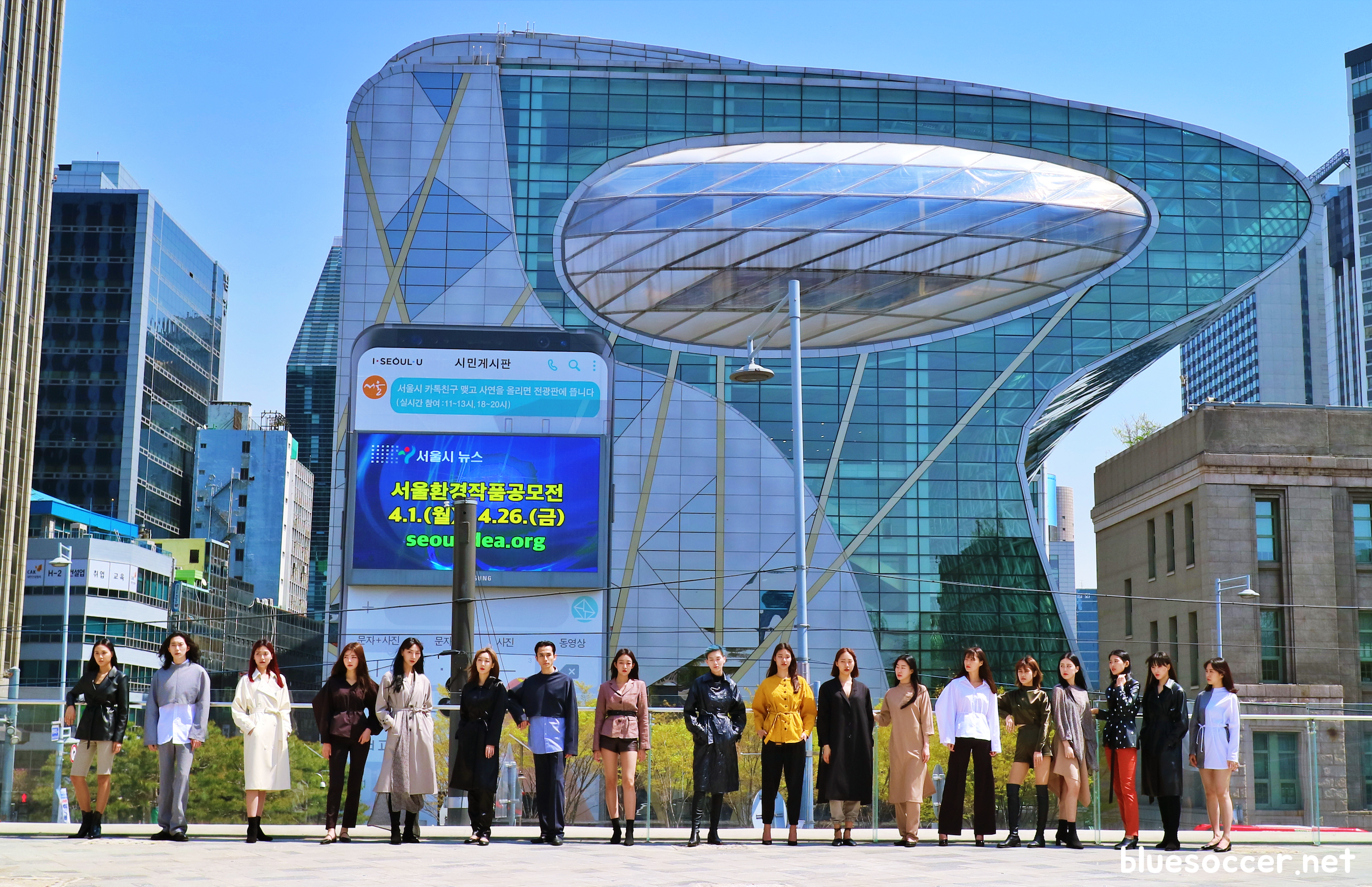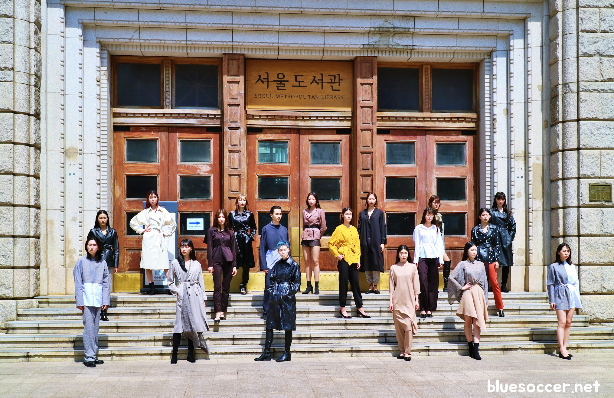 모델들이 서울도서관 앞에서 포즈를 취하는 모습