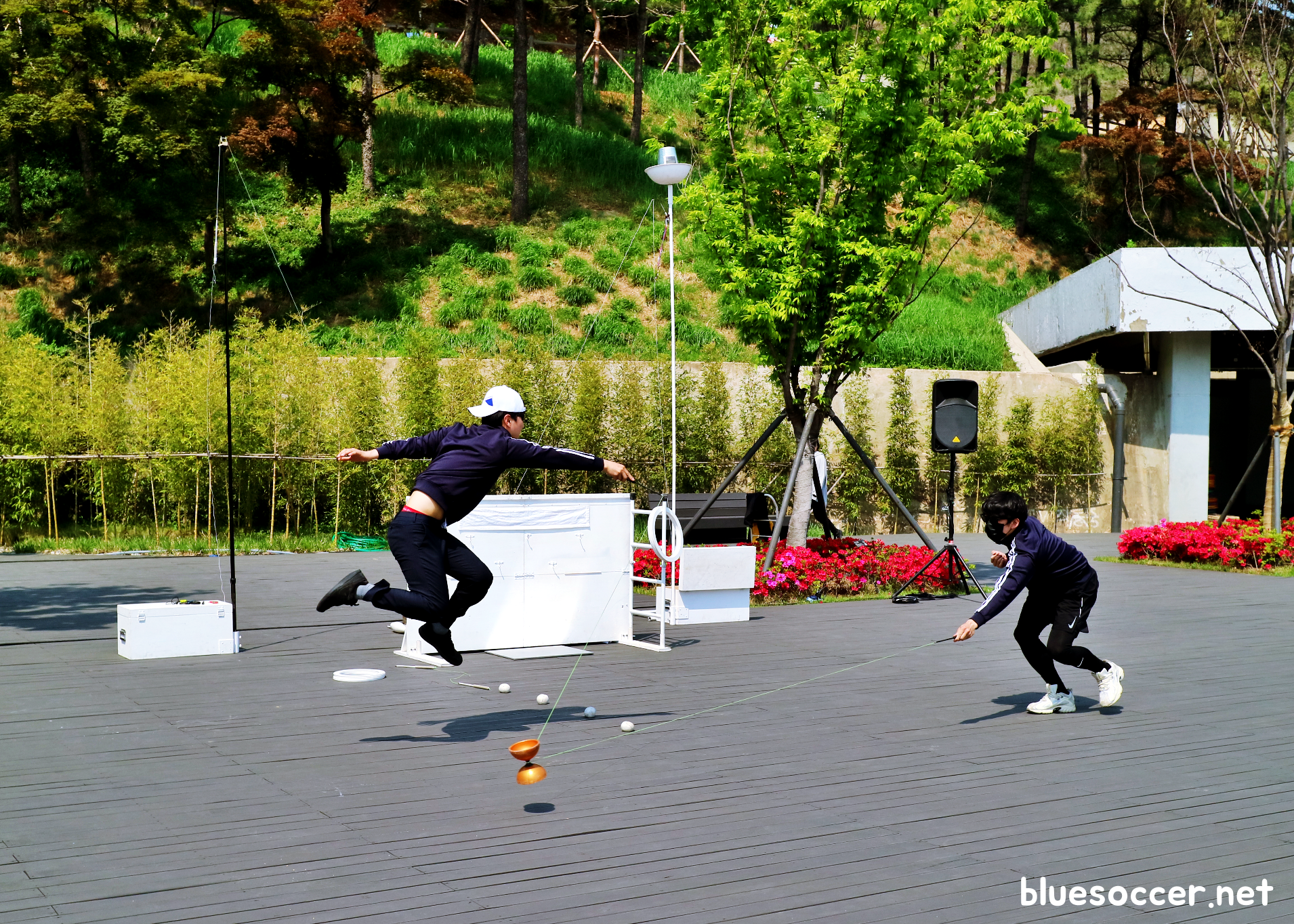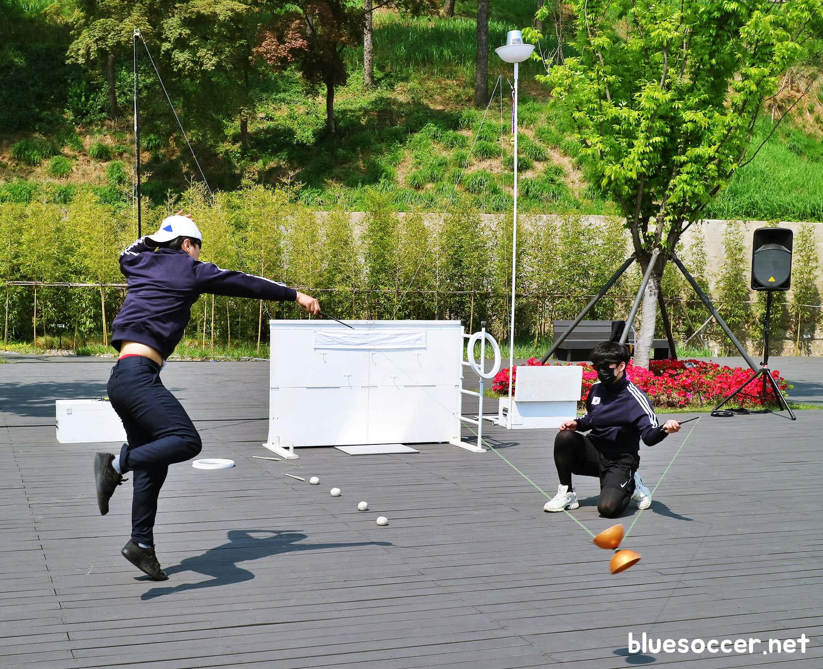 문화비축기지 야외데크에서는 국내 작품인 서커스 올림픽(서커스 디 랩) 리허설하는 모습을 볼 수 있었습니다. 올림픽 스포츠 종목과 서커스를 넘나드는 공연을 펼치는데 실제로 구경하니 재미있었습니다.