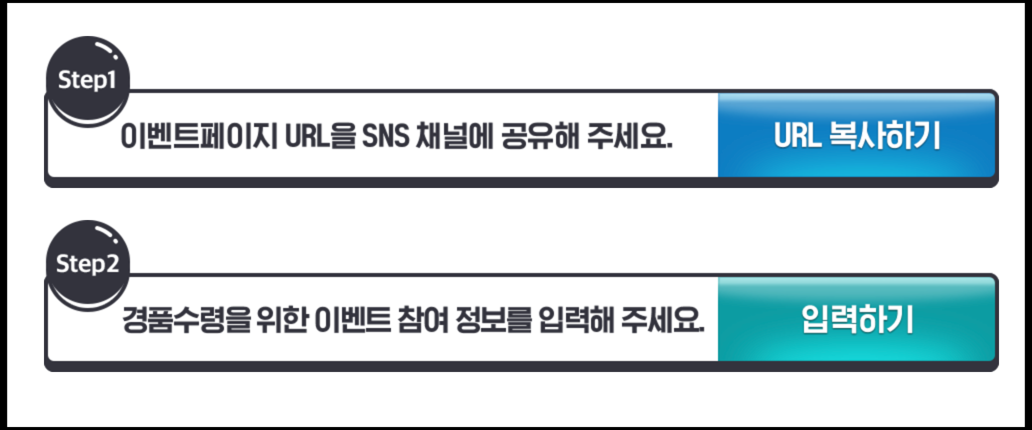 드렁큰싱어 영상 이벤트 참여하려면 두 가지 조건을 충족하시면 됩니다. '(1) 이벤트 페이지 URL을 SNS 채널에 공유 (2) 경품 수령을 위한 이벤트 페이지 입력' 말입니다.