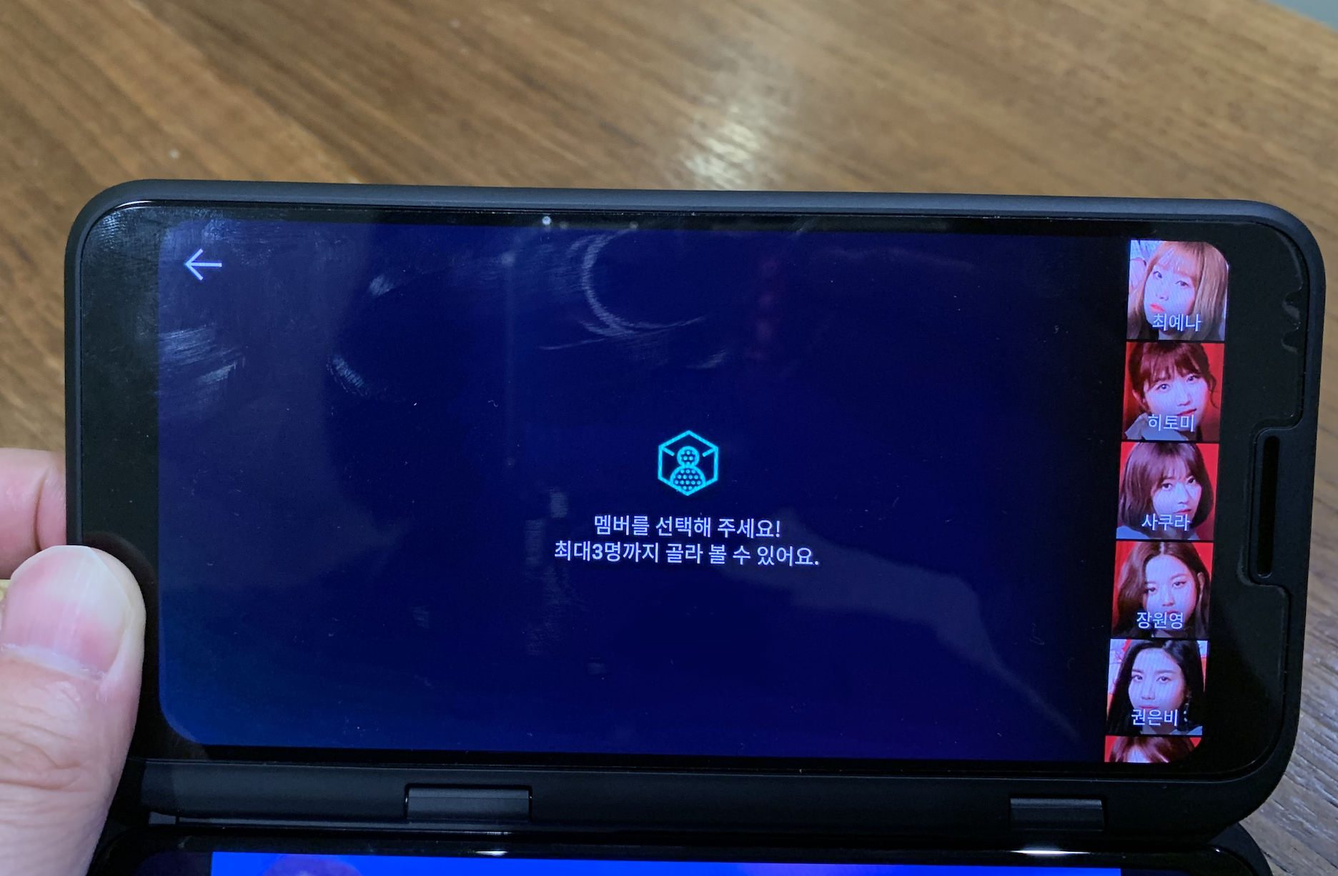 저는 듀얼 스크린으로 장원영, 김민주, 이채연을 지정해서 시청했습니다. 단말기 스크린에서는 아이즈원 전체 퍼포먼스 영상을 동시에 볼 수 있습니다. 멤버 최대 3명의 모습과 그룹 전체 모습을 한 번에 볼 수 있는 것은 LG V50 ThinQ 그리고 LG U+ 아이돌 라이브 앱에서 누릴 수 있는 '행복(!)'입니다. 여기서 행복이라는 단어를 강조한 것은 아이돌 팬의 입장에서 제가 좋아하는 아이돌 덕질을 흥미롭게 할 수 있기 때문입니다.
