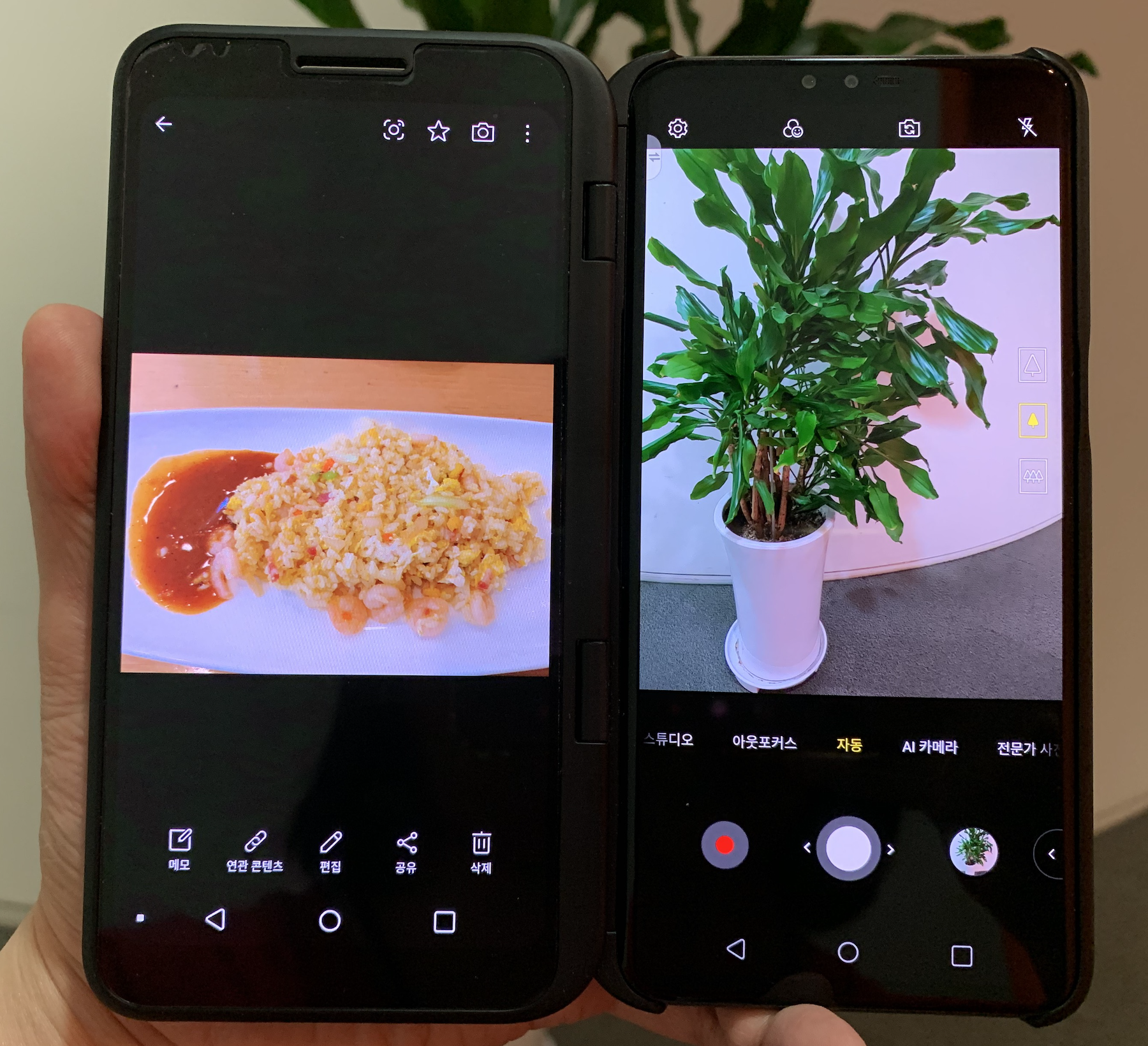 LG V50 ThinQ 듀얼 스크린은 카메라 촬영 시에도 유용합니다. 무언가의 사진을 촬영 완료하면 왼쪽 스크린으로 그 결과물이 바로 뜹니다. 만약 촬영 결과물이 마음에 들지 않는다면 오른쪽 스크린을 바라보며 사진 촬영을 다시 할 수 있습니다.