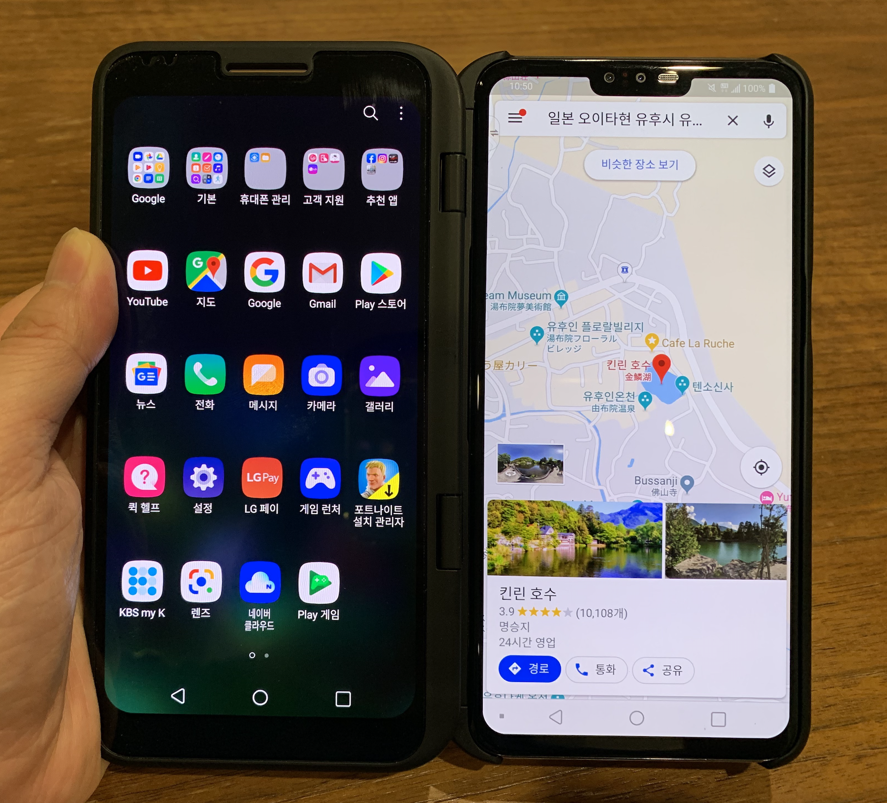 해외여행 떠나는 것을 좋아하는 분이라면 LG V50 ThinQ가 유용할 겁니다. 특히 구글 지도 말입니다. 스마트폰으로 구글 지도를 보면서 또 다른 디스플레이를 통해 다른 무언가를 할 수 있겠죠. 구글 지도의 경우 직접 목적지를 찾는데 있어서 유용합니다.