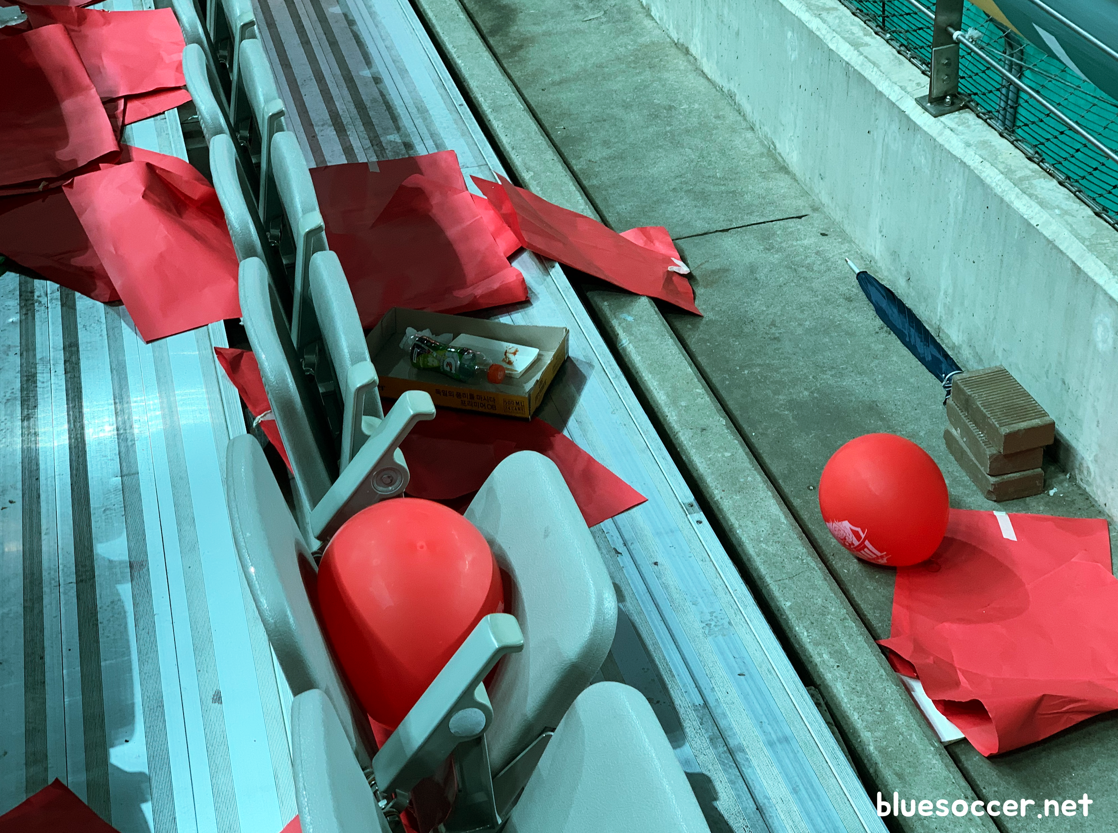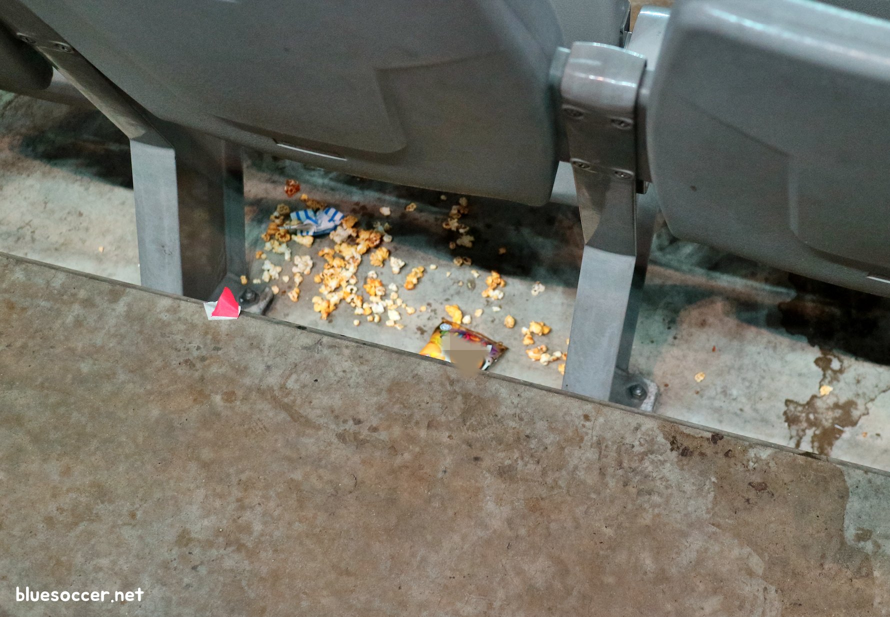 안타깝게도 관중석 곳곳에 쓰레기가 넘쳐났습니다. 카드섹션을 해서 그런지 카드섹션 종이가 관중석에 버려진 경우가 많았습니다.