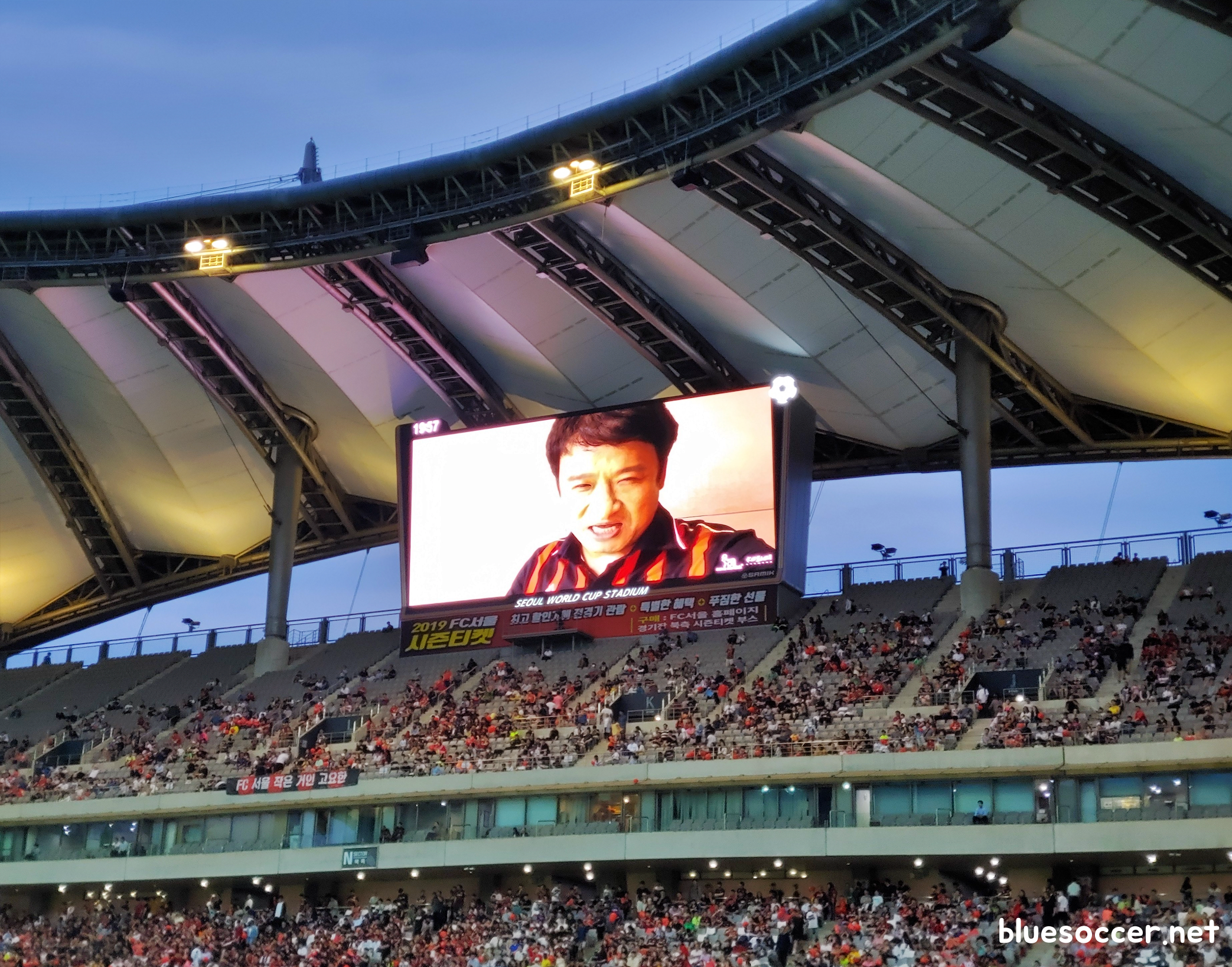이번 경기가 K리그의 인기 팀들이 맞붙기 때문인지 양팀 서포터즈의 응원 열기가 엄청났습니다. 홈팀 FC서울 서포터즈가 E석 관중들과 함께 카드섹션을 펼치는 응원 열기를 보여줬다면 원정팀 수원 블루윙즈 서포터즈는 많은 사람들이 파란색 옷을 입으며 원정 관람석에 운집했습니다.