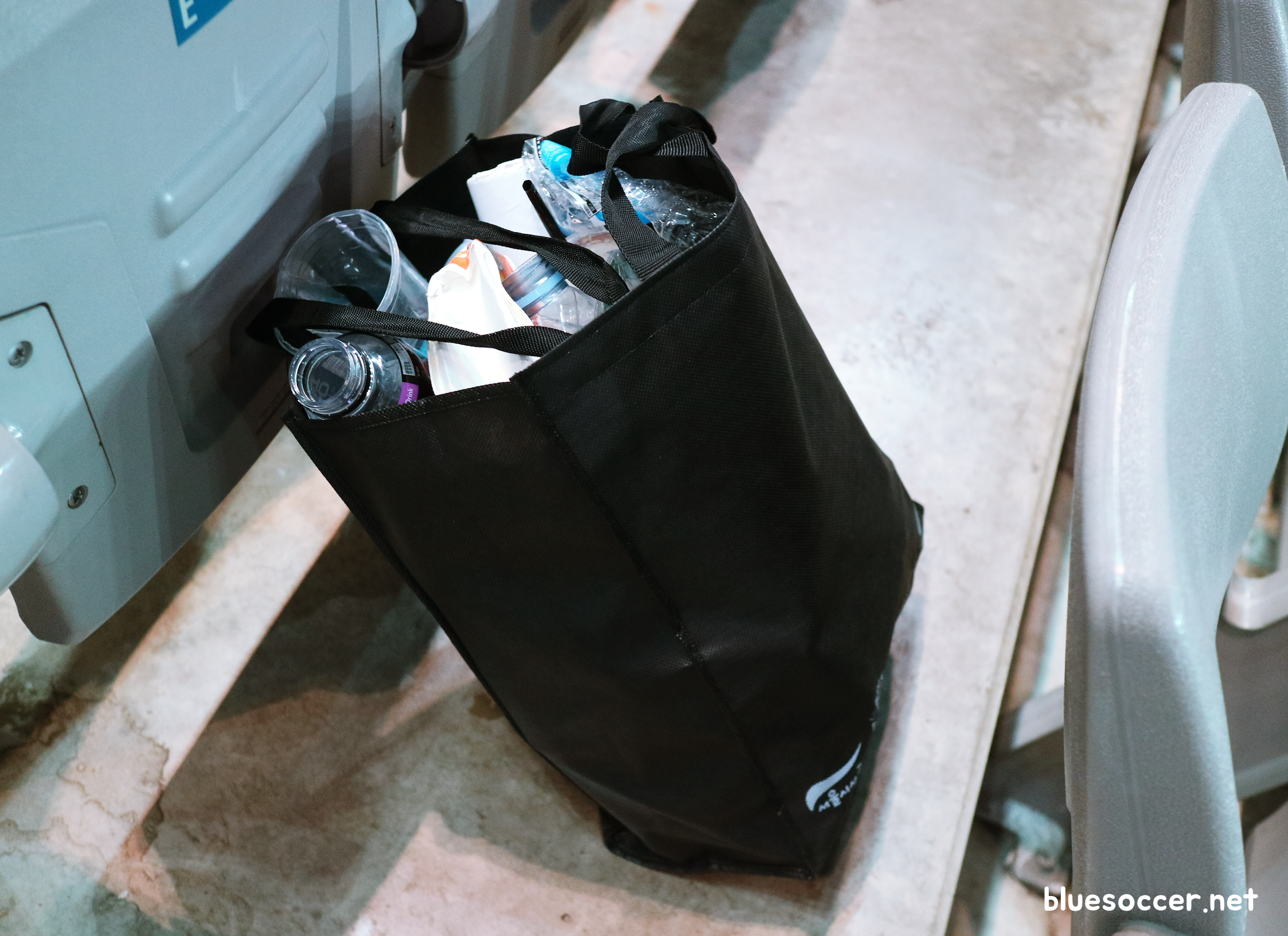 쓰레기통을 보면 쓰레기를 쓰레기통에 버린 사람이 많다는 것을 알 수 있습니다.(아마도 쓰레기줍기 스포츠 대회에 참여한 분들은 아닌 듯) 하지만 일부 관중들이 관중석에 쓰레기를 버린 것이 아쉬웠습니다.