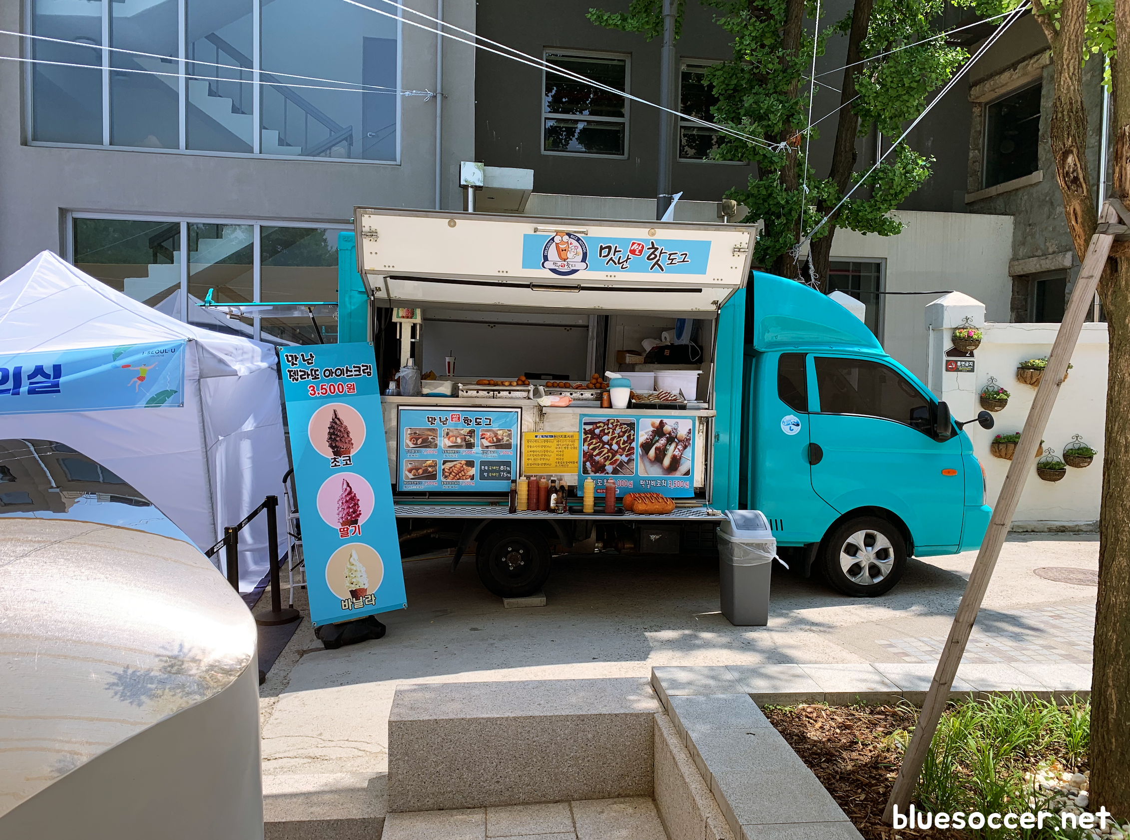 푸드트럭도 있습니다. 마침 배가 고팠는데 핫도그 맛있게 먹었습니다.