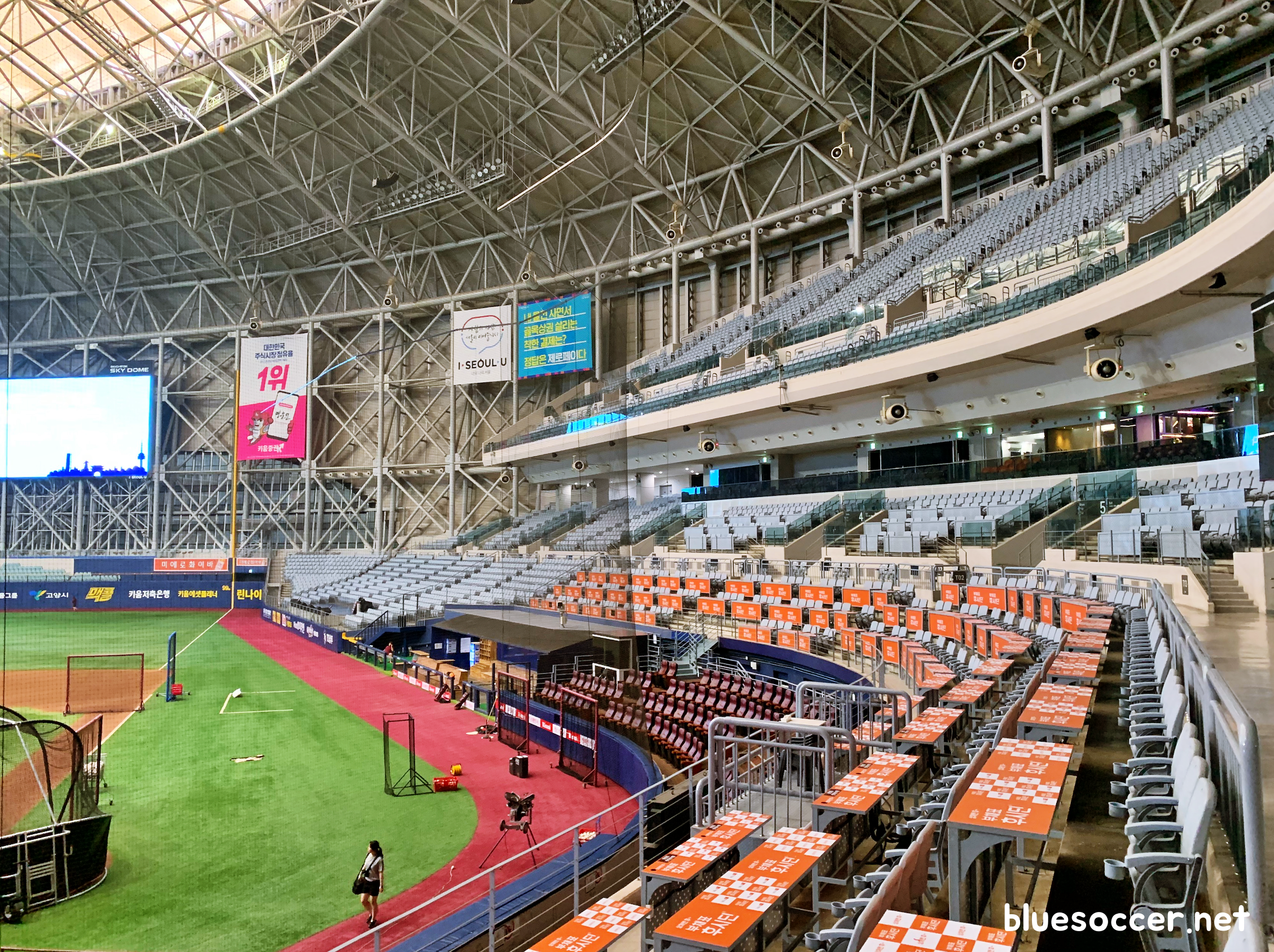 이곳의 천장 높이가 67m인 것도 인상적입니다. 일본 야구의 성지로 꼽히는 도쿄돔보다 5m 높습니다. 도쿄돔의 경우 파울볼이 천장을 맞추는 경우가 있는데 고척스카이돔은 그 빈도가 아마도 낮을 겁니다. 또한 냉방시스템이 가동되면서 날씨가 뜨거운 여름에 쾌적한 경기를 치를 수 있습니다. 선수 입장에서는 무더위를 잊으면서 경기에 임할 수 있고 관중 또한 더위를 의식하지 않고 경기를 관전할 수 있어서 좋습니다.