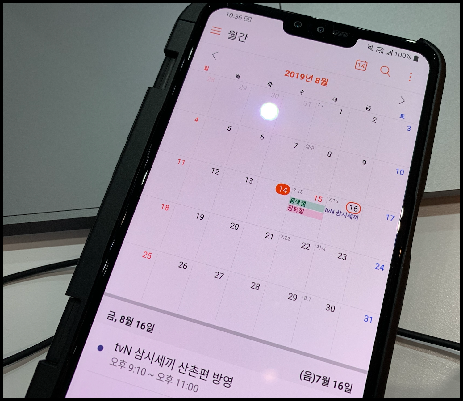 [사진 = 2019년 8월 16일 tvN 삼시세끼 산촌편 2회 방영됩니다. 사진은 저의 스마트폰 달력이며 2019년 8월 16일을 가리킵니다. (C) 나이스블루]