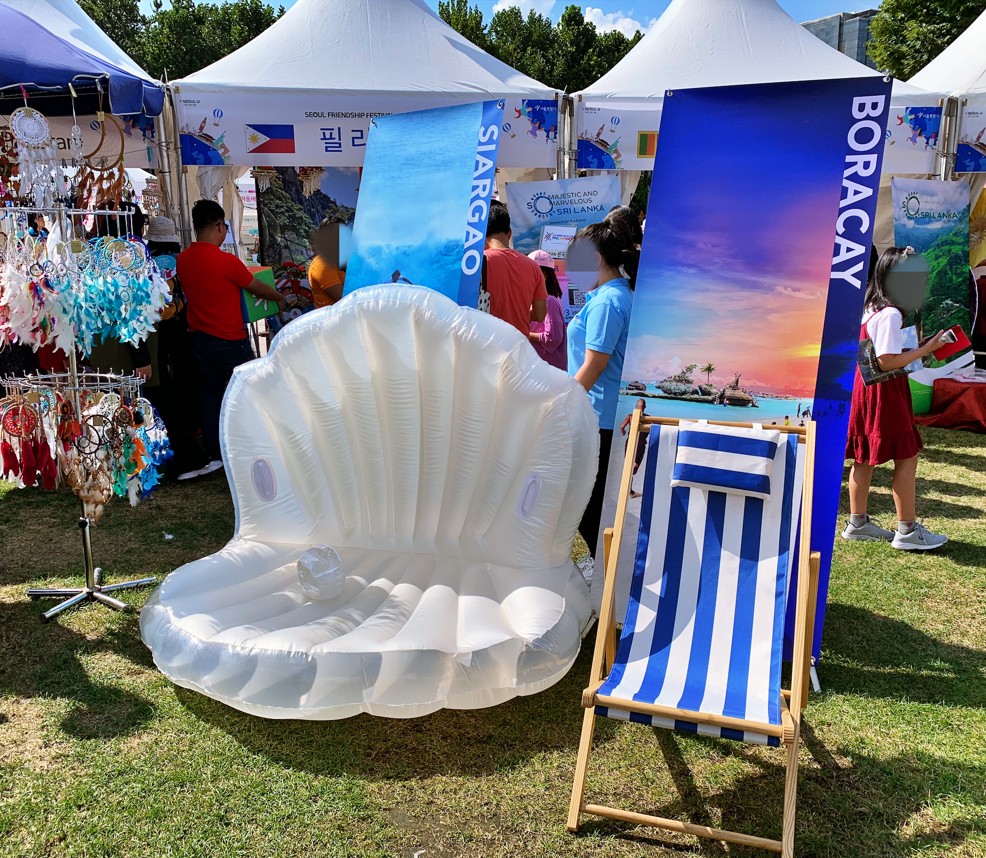 필리핀 부스에서는 샤르기오(SIARGAO) 보라카이(BORACAY)가 홍보되는 모습을 봤습니다. 보라카이 글자만 봐도 필리핀이 한국인들에게 여행지로서 친숙한 곳임을 실감하나 샤르기오는 처음 접했습니다. 알고보니 세부 근처에 있는 여행지더군요. 한국에서는 잘 알려지지 않았으나 이곳도 관광객들이 꽤 찾는 것으로 알려졌습니다. 역시 필리핀은 휴양 목적으로 방문하기 좋은 여행지가 풍부한 것 같습니다. 서울세계도시문화축제 통해서 샤르기오가 한국인 포함한 여러 국적의 사람들에게 더욱 알려졌을 것으로 보입니다.