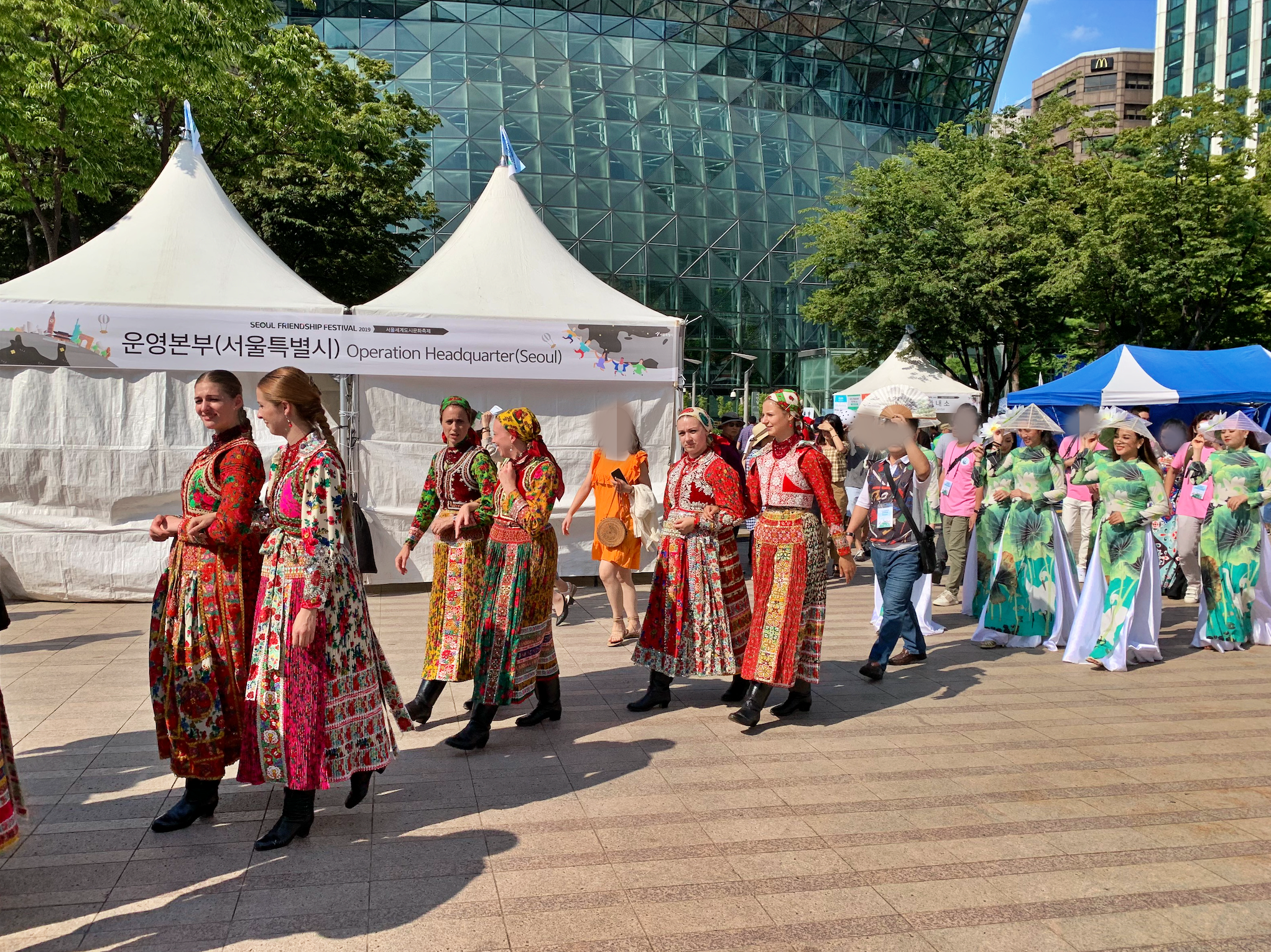 서울광장 곳곳을 둘러보다가 전통의상을 착용하고 행렬하는 외국인들을 봤습니다. 아마도 서울광장으로 진입하는 퍼레이드 행렬이 아닐까 싶습니다. 여러 나라의 전통의상을 둘러보며 세계가 넓다는 것을 실감했습니다. 전통의상하면 한복(한국) 기모노, 유카타(일본) 치파오(중국) 아오자이(베트남)를 떠올리게 되는데 아직 한국에는 잘 알려지지 않은 전통의상들이 꽤 있더군요.