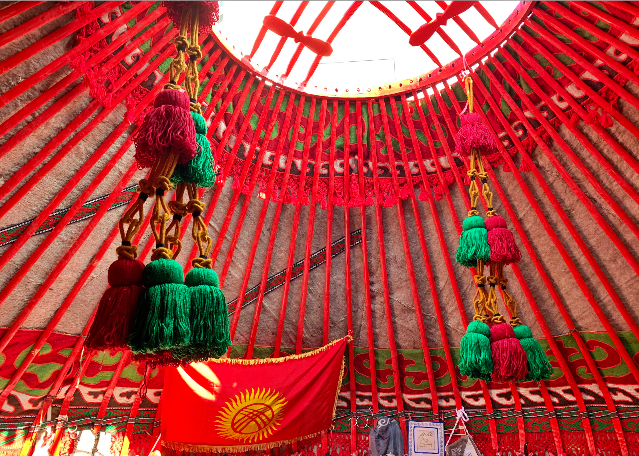 키르기스 전통집에서는 8월 31일이 키르기즈 공화국의 독립 기념일임을 알리는 현수막이 있었습니다. 키르기즈 공화국의 역사적인 날을 기념하는 모습을 봤습니다.