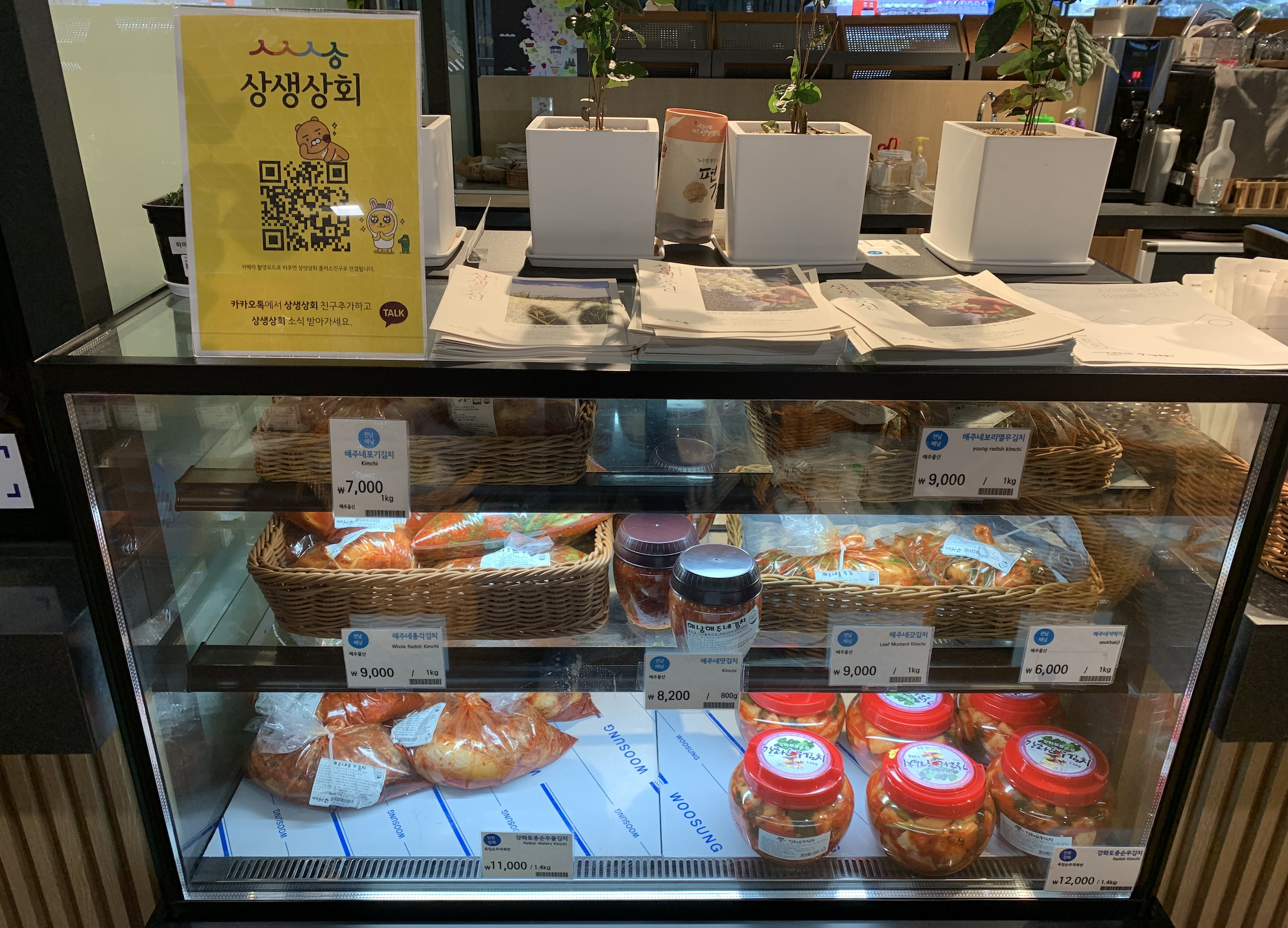 상생상회에서 만날 수 있는 지역 농수산물은 생각보다 다양했습니다. 건어물과 건내물, 김치, 지역의 차, 해산물, 채소와 과일, 냉동식품, 냉장식품, 건강식품 등을 만날 수 있습니다. 아마도 이곳을 찾는 손님 중에는 특정 상품을 알아보려고 했는데 다른 품목에 눈길이 가는 경우가 있지 않을까 싶습니다. 지역에서 생산되는 품목이 알고보면 많음을 알 수 있습니다.
