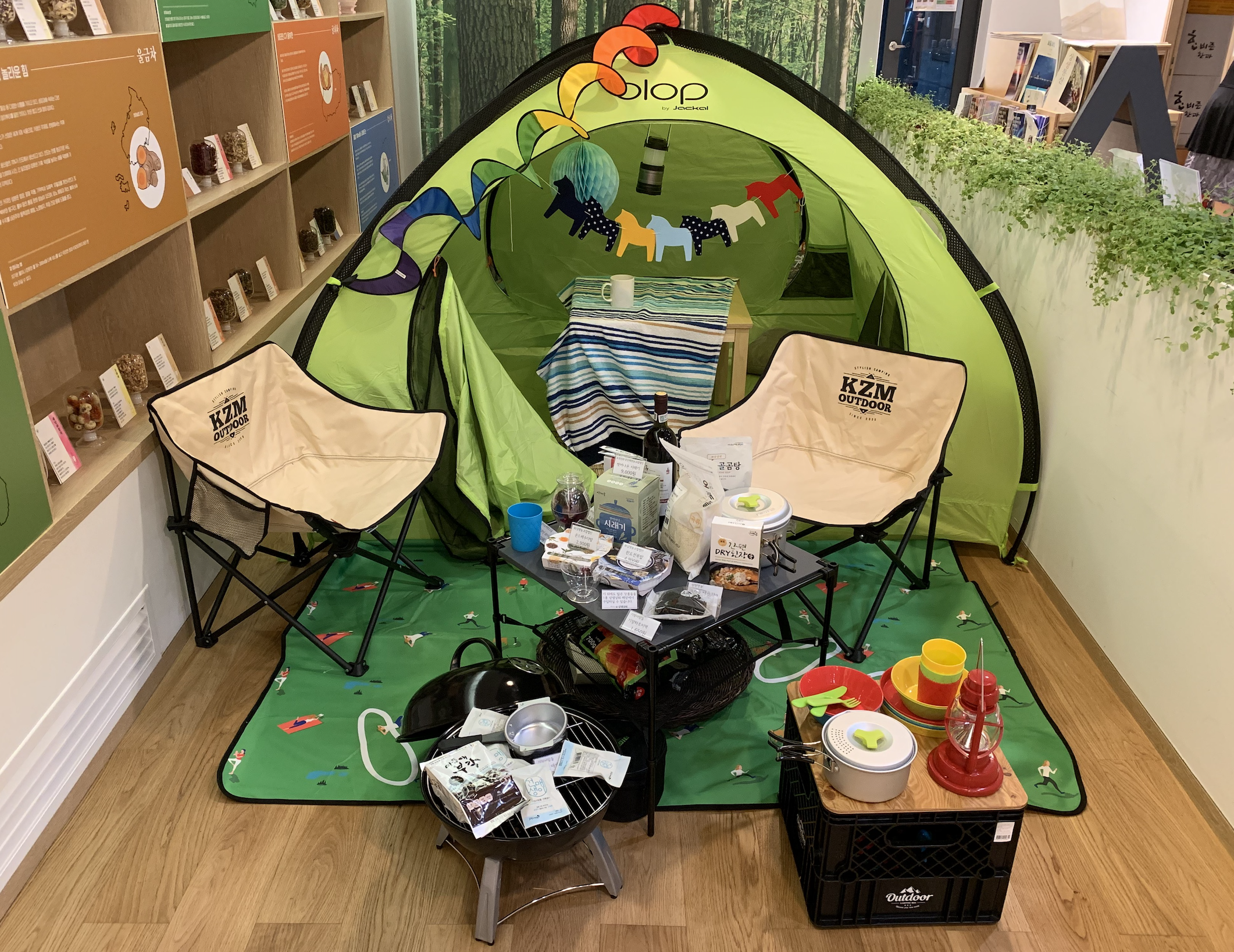 그뿐만이 아닙니다. 상생상회의 또 다른 취지는 지역의 문화를 나누는 것입니다. 서울과 지역이 이어질 수 있는 공간을 마련했습니다. 지하 1층에 있는 지역자원 전시홍보 공간을 통해서 말입니다. 제가 이곳을 방문했을 때는 지하 1층에서 '폐교의 재발견'이라는 테마의 지역캠핑이 홍보되는 모습을 봤습니다. 지역에 거주하는 분들이 서울에서 지역을 알릴 수 있는, 서울 시민이 지역의 특색을 접하는 역할을 동시에 할 수 있는 곳이 바로 상생상회입니다.