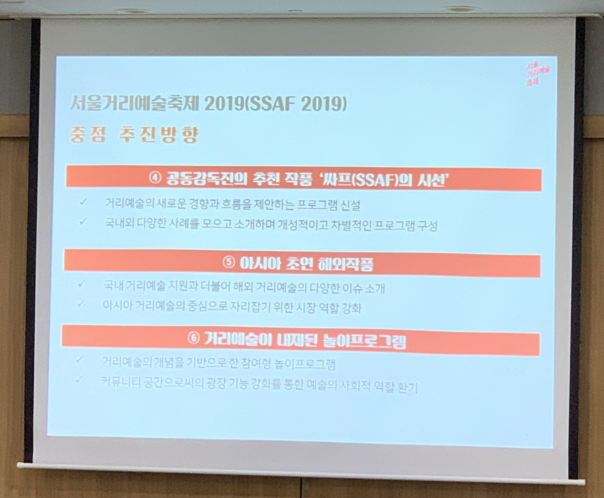 서울거리예술축제 2019 중점 추진방향으로는 6가지 언급됐습니다. 요약하면 이렇습니다.