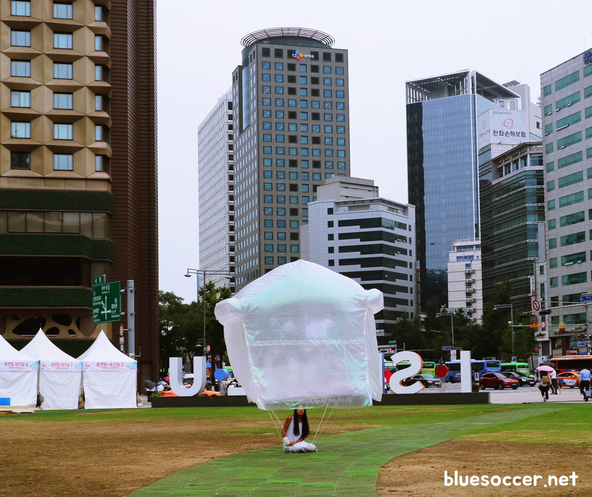 서울광장에서는 수많은 시민들의 참여가 가능한 퍼포먼스도 선보입니다. 종이상자로 16m 규모의 옛 서울역과 평양역을 탄생시키는 퍼포먼스 '시민의 역사(올리비에 그로스때뜨, 프랑스)가 진행됩니다. 이 행사는 지난 2일에 서울광장에서 시연된 모습을 봤습니다. 시민들이 미리 종이상자를 만들더군요. 본 행사는 이미 제작된 종이상자를 통해서 퍼포먼스를 했을 것입니다.