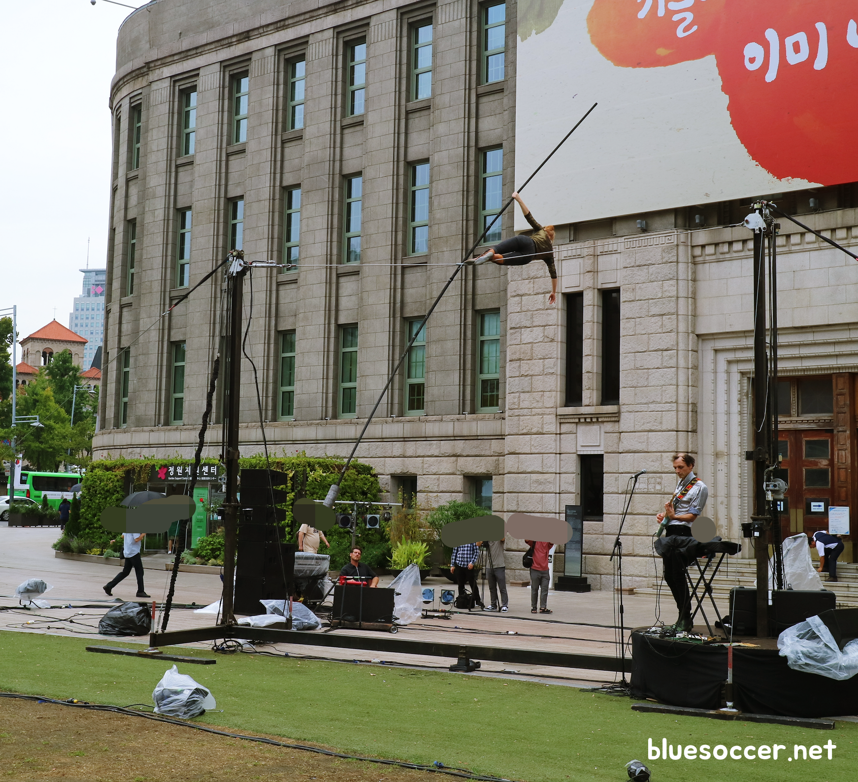 그 이후에는 '저항'(레 피 뒤 레나드 팔, 프랑스)이라는 퍼포먼스가 펼쳐졌습니다. 한국에서만 줄 타기가 있는 줄 알았는데 유럽에서도 줄 타기를 한다는 것을 처음 알았습니다. 한국 민속 줄 타기와 차원이 다른 서양의 줄 타기를 서울거리예술축제 2019에서 볼 수 있습니다.