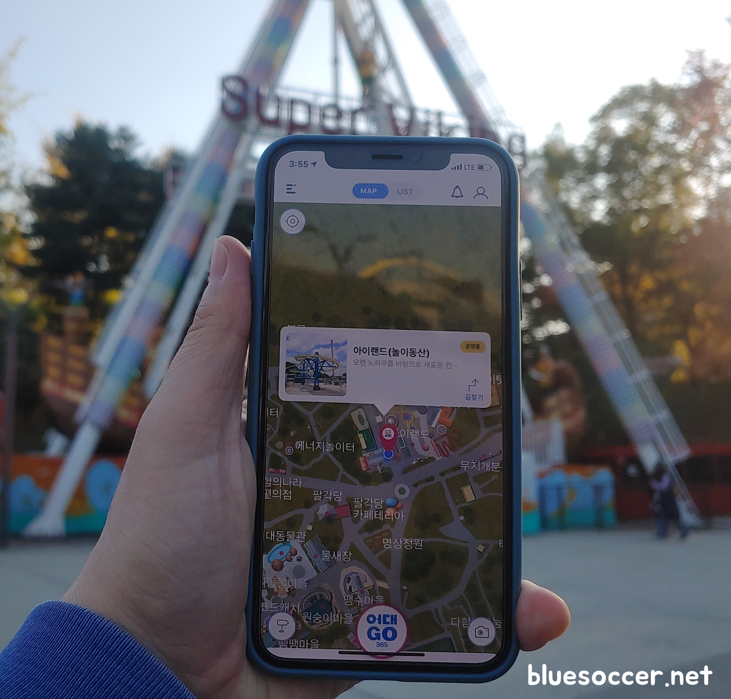 아이랜드(놀이동산)에 도착하면서 어대고365에 접속하니 저의 현재 위치가 놀이동산에 있다는 것이 화면에 뜹니다.