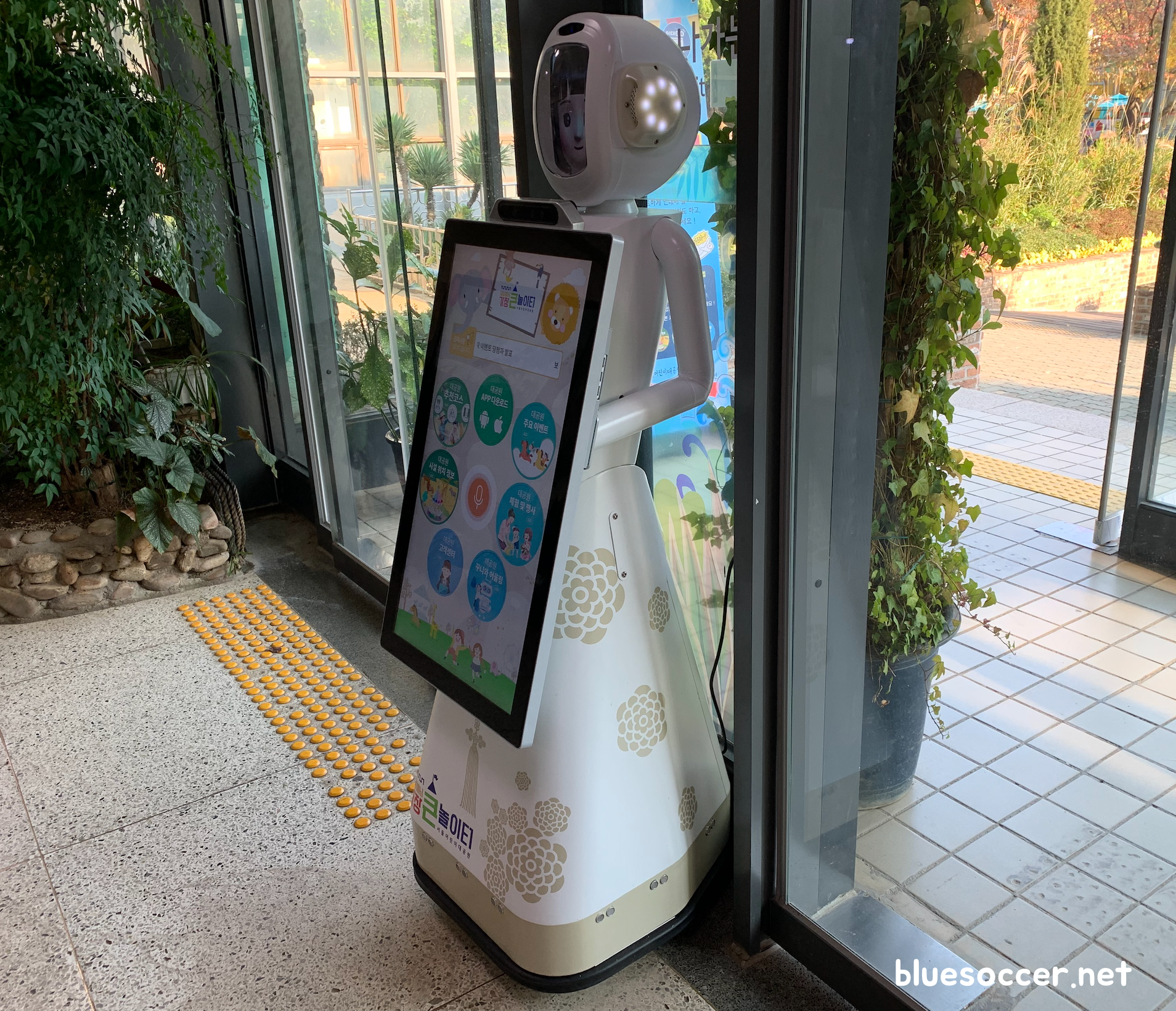 꾸니 모습은 이렇습니다. 인천국제공항 제1터미널에서 길 안내를 하는 로봇을 볼 수 있었는데 서울어린이대공원에서도 볼 수 있습니다. 다만, 꾸니 같은 경우에는 얼굴쪽에 사람의 모습과 비슷한 캐릭터가 있다는 점에서 친근한 느낌이 있습니다. 아마도 어린이들이 보다 쉽게 접근하도록 캐릭터를 설정한 것이 아닌가 싶습니다. 체감적으로는 이 친구가 인천국제공항에서 봤던 로봇보다 키(?)가 더 커보였습니다. 서로 같은 길 안내를 하는 역할이 설정되었으나 외형적인 모습은 전혀 달랐습니다.
