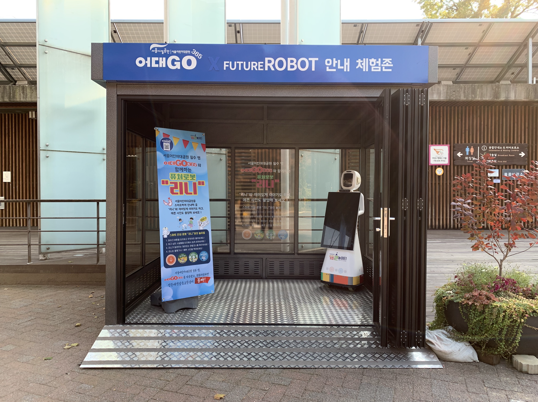 서울어린이대공원에는 또 하나의 퓨처로봇이 있습니다. 정문 고객센터 앞 부스에 있는 '리니'입니다. 즉, 서울어린이대공원에 퓨처로봇이 2대 있습니다. 앞에서도 언급했습니다만, 인천국제공항에서 길 안내를 하는 로봇을 직접 보면서 사람이 많이 찾는 장소에 로봇이 일종의 도우미 역할을 하고 있음을 알게 됐습니다. 앞으로도 로봇이 사람의 삶을 보다 편리하게 바꿀 것으로 기대됩니다.