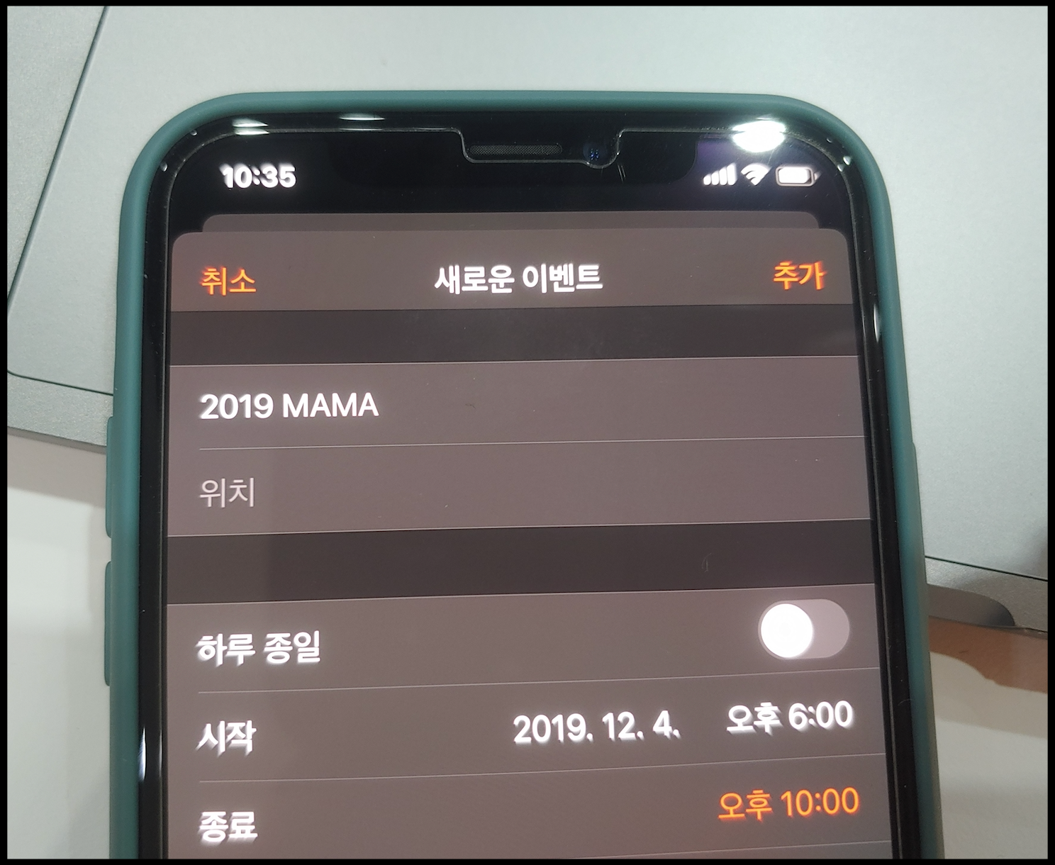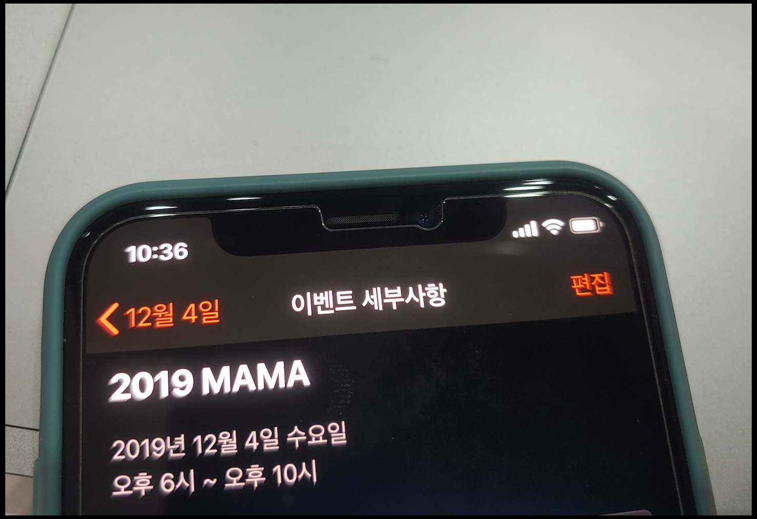 [사진 = 2019년 12월 4일 2019 마마가 펼쳐집니다. 사진은 저의 아이폰 달력이며 2019년 12월 4일을 가리킵니다. (C) 나이스블루]