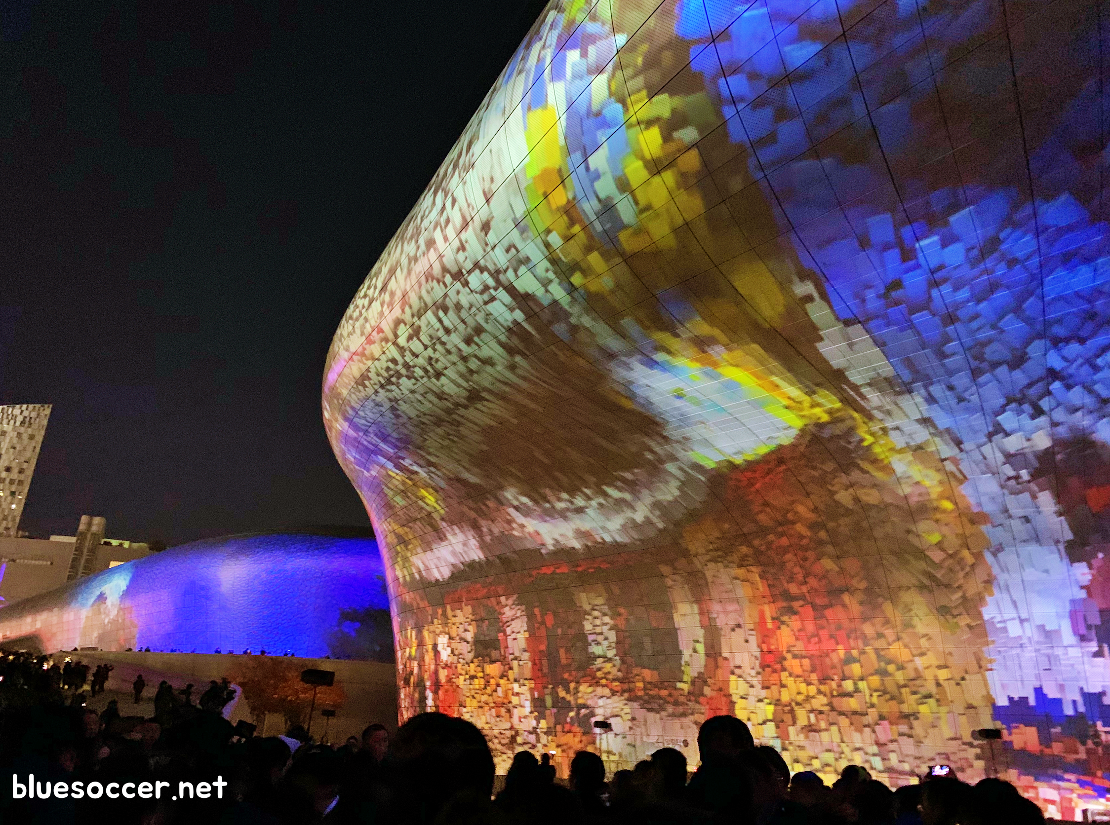 DDP 어울림 광장에서는 서울라이트가 본격적으로 시작됐습니다. 서울라이트의 올해 주제는 '서울 해몽(SEOUL HAEMONG)'이라고 합니다. 상영 시간 16분 동안 과거(4분) 현재(6분) 미래(6분) 챕터를 통해 '기억의 공간'을 여행하는 특별한 경험을 선사한답니다. DDP의 웅장한 건물을 활용한 빛 축제가 서울 시민들과 해외 관광객들에게 전파되는 모습이 그야말로 환상적으로 느껴졌습니다.