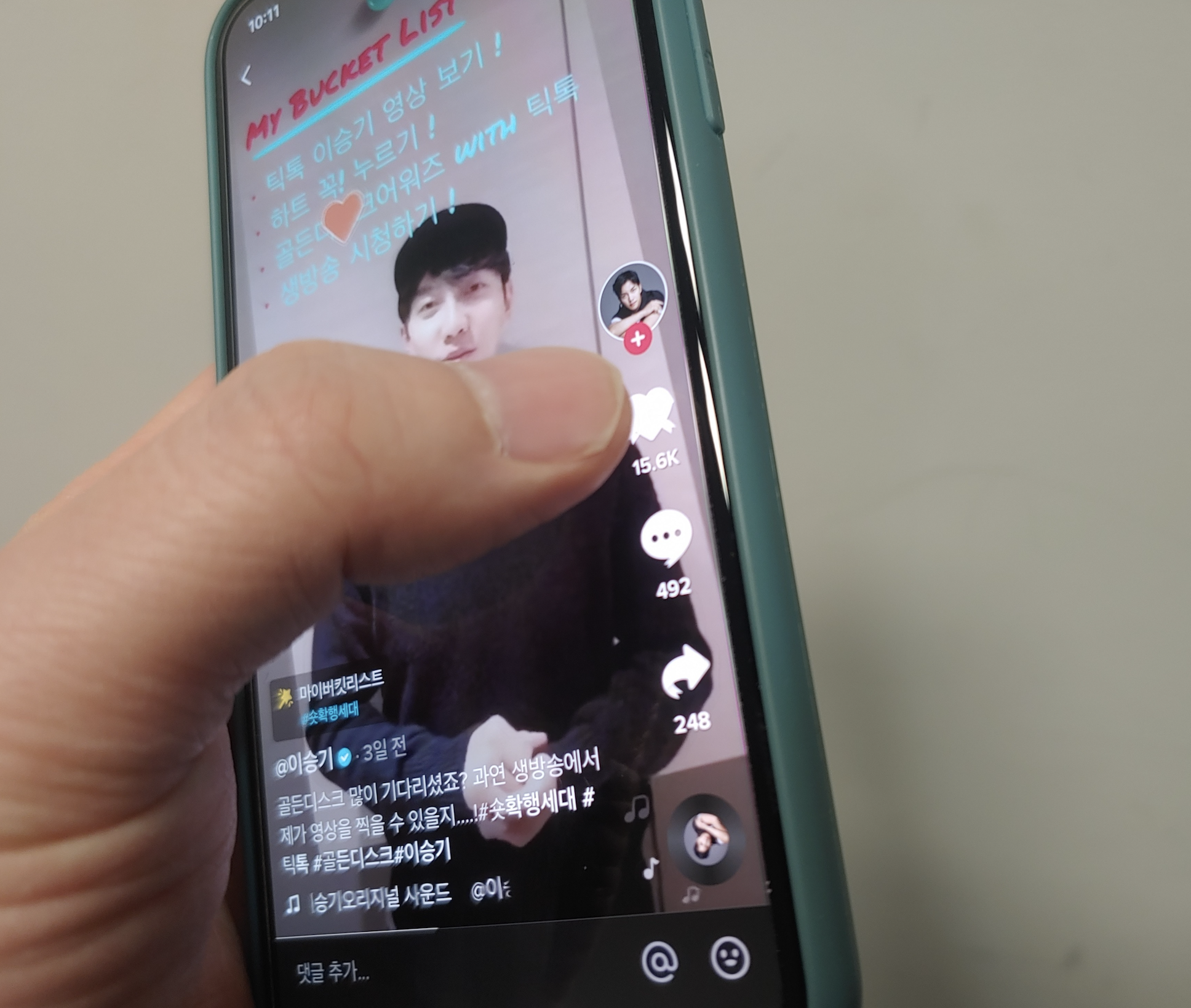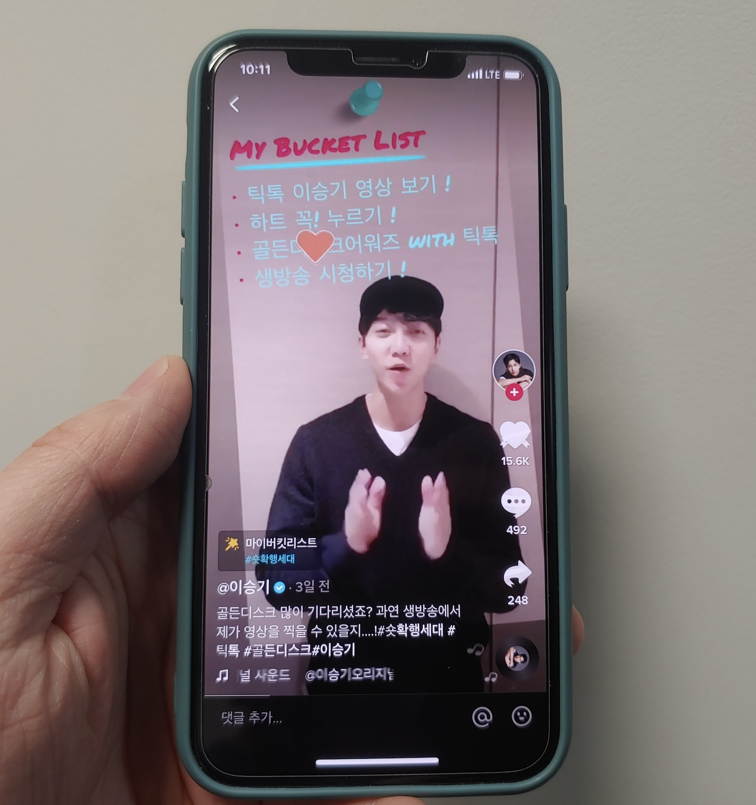 이 틱톡 영상을 주목하시기 바랍니다. 이승기가 골든디스크 어워즈 MC를 맡게 되었다며 해당 영상이 10만 하트(좋아요)를 받을 경우 1월 5일 골든디스크 어워즈 생방송 현장에서 틱톡 영상을 찍겠다는 공약을 걸었습니다. 만약 10만 하트를 찍는다면 오는 1월 5일 골든디스크 어워즈 음반 부문 시상식에서 MC가 틱톡 영상을 실시간으로 올리는 흥미로운 모습을 보게 될 것입니다. 이승기 틱톡 영상은 이렇습니다.