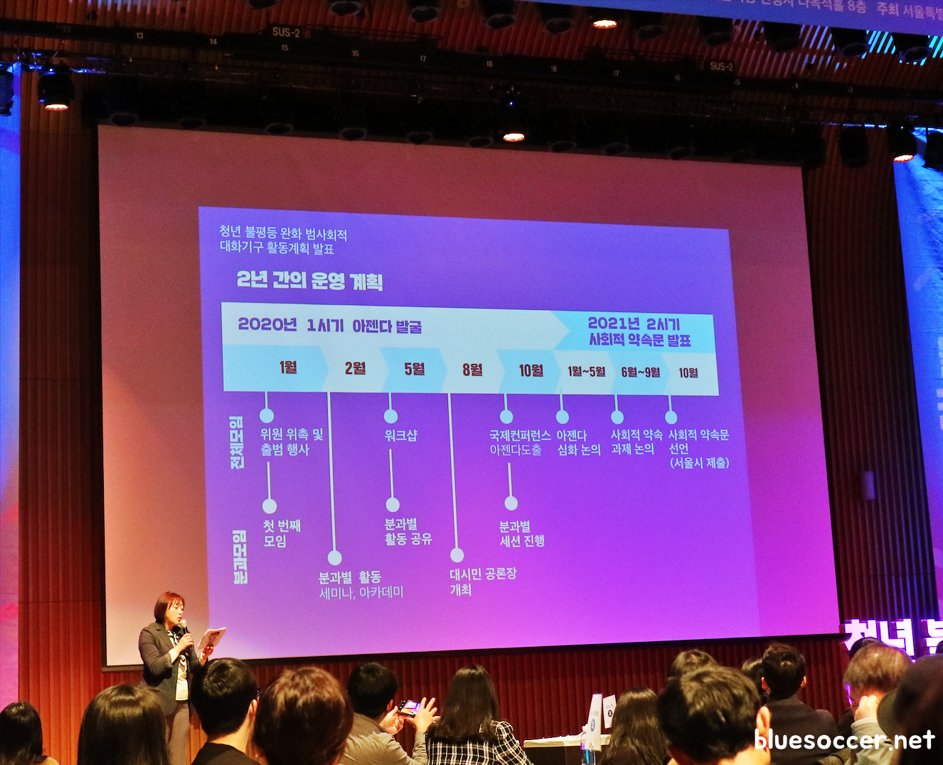 청년 불평등 완화 범사회적 대화기구의 경과에 대하여 위원 위촉 위한 전문가 섭외 및 시민위원 공개모집에 대해서는 다양한 분야의 청소년 및 청년 당사자, 연구원, 기업가, 시민단체, 정당 등 전문가 추천이 있었으며 3개 분과별 10대부터 60대까지 239명 시민위원이 신청했다고 합니다. 공개모집은 시민위원 성별, 연령 고려하여 무작위로 추첨하여 각 분과별 남녀비율 7:8, 10대부터 60대까지 분포되었다고 합니다. 3개 분과는 (1) 공정, 격차해소 분과(31명) (2) 분배, 소득재구성 분과(29명) (3) 사회, 정치참여 분과(29명)를 두었으며 공동위원장은 3명입니다. 위원은 두 가지 역할을 한다고 합니다. '수집가'로서 일상에서 시민들이 겪고 있는 불평등을 모으는 것, '기획가'로서 시민들의 목소리가 모이는 공론장을 준비하는 것이라고 합니다. 아울러 2년 간의 운영 계획을 밝히며 전체 및 분과별 모임 활동을 어떻게 할지 전파했습니다.