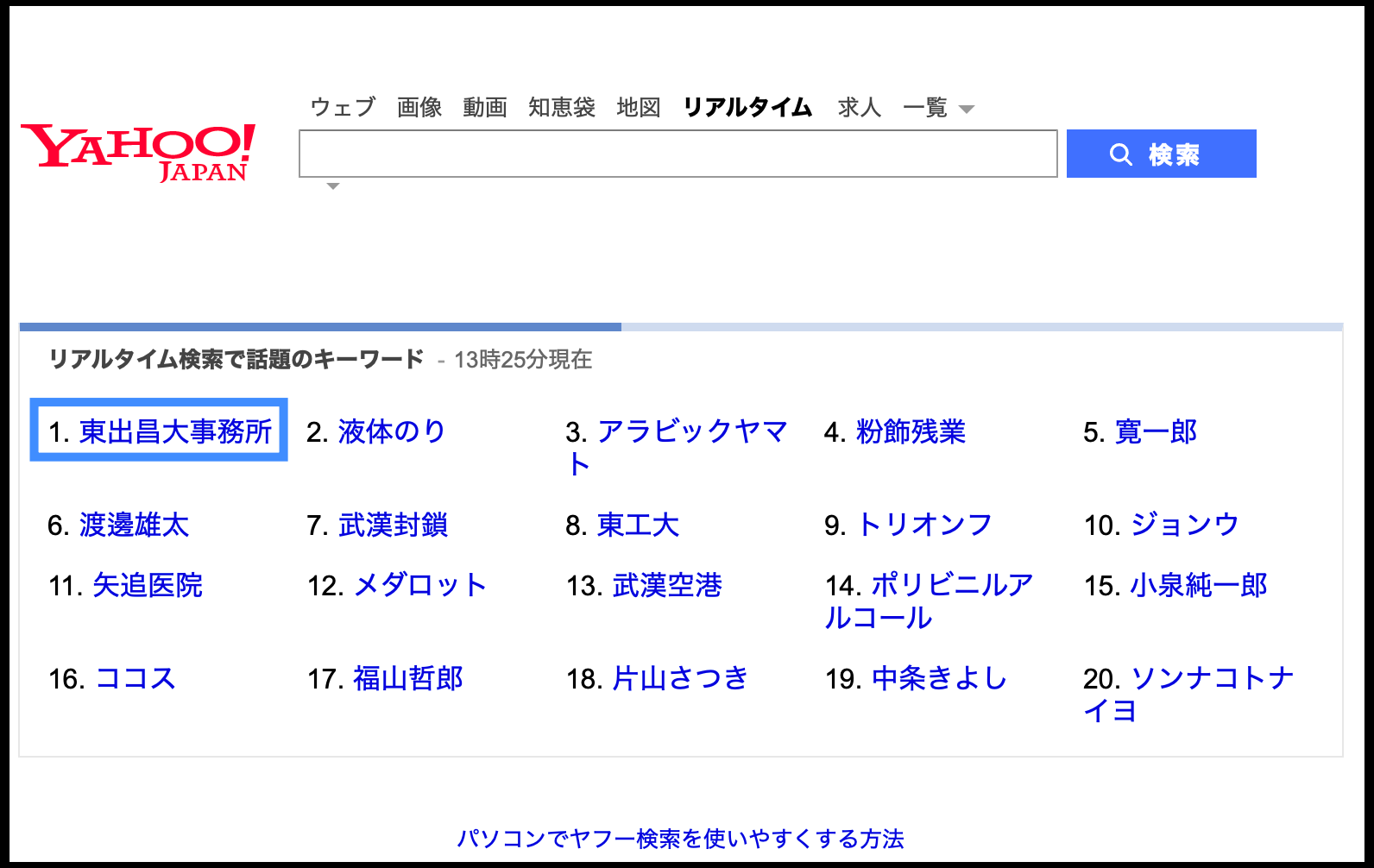 [사진 = 히가시데 마사히로 사무소(한국으로치면 소속사)가 1월 23일 야후 재팬 실시간 검색어 1위에 올랐습니다. 그의 소속사에서는 불륜을 거의 인정한 것으로 알려졌습니다. 다만, 히가시데 마사히로와 안의 별거는 이혼으로 향하는 것이 아니라며 히가시데 마사히로 이혼 부정했습니다. 아울러 카라타 에리카 소속사에서는 불륜을 인정했습니다. 카라타 에리카의 경솔한 행동에 진심으로 반성하며 자신의 약함과 어리석음을 받아들이겠다고 밝혔습니다. 아울러 이런 일이 다시는 없도록 엄격히 지도하겠다는 입장을 밝혔습니다. (C) 야후재팬 공식 홈페이지(yahoo.co.jp)]