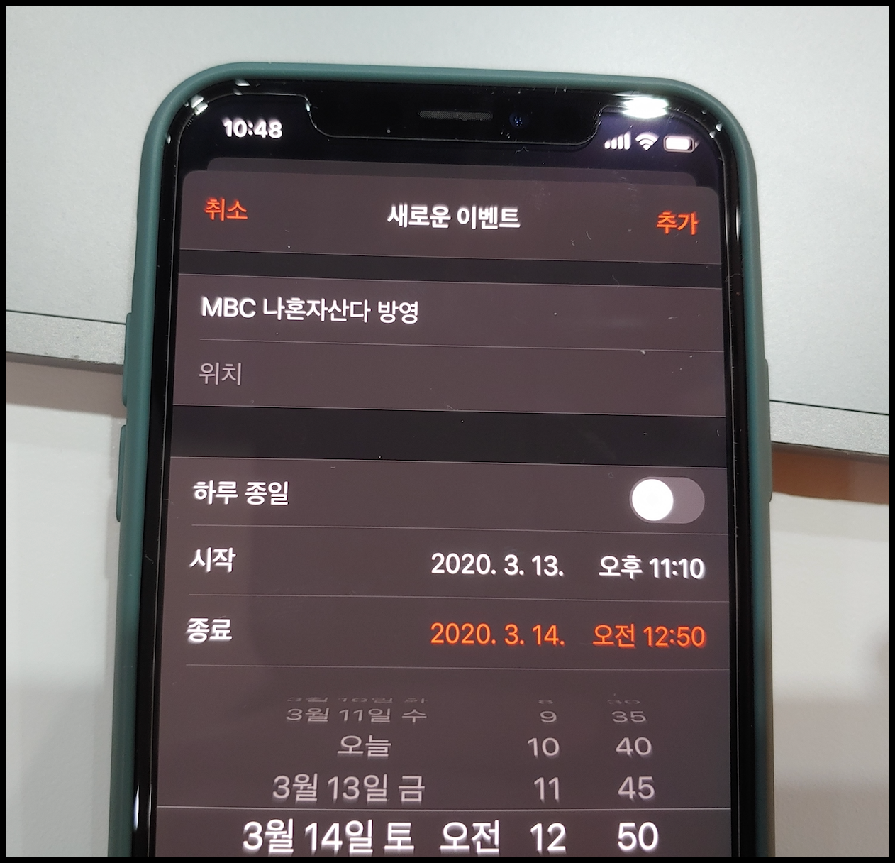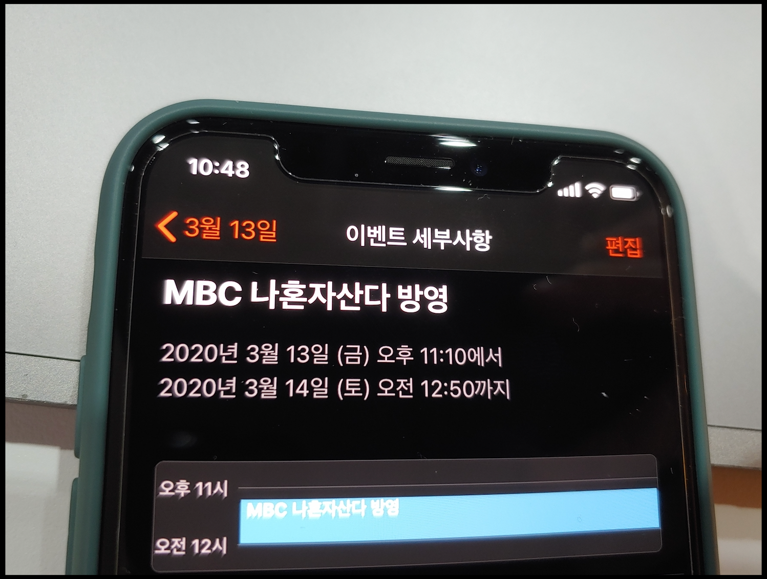 [사진 = 2020년 3월 13일 MBC 나혼자산다 방영됩니다. 사진은 저의 스마트폰 달력이며 2020년 3월 13일을 가리킵니다. (C) 나이스블루]