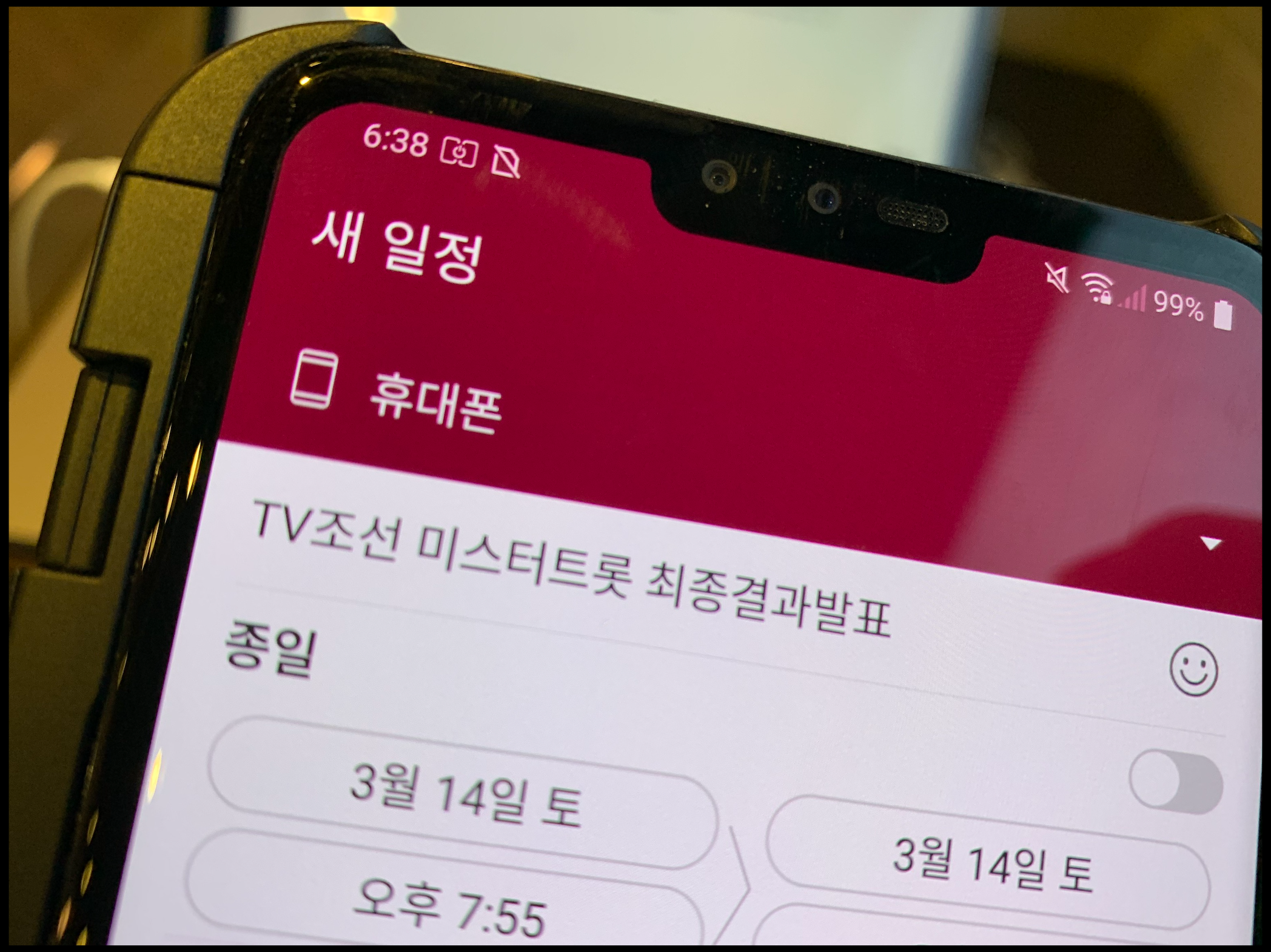 [사진 = 2020년 3월 14일 TV조선 미스터트롯 최종결과발표가 방영됐습니다. 사진은 저의 스마트폰 달력이며 2020년 3월 14일을 가리킵니다. (C) 나이스블루]