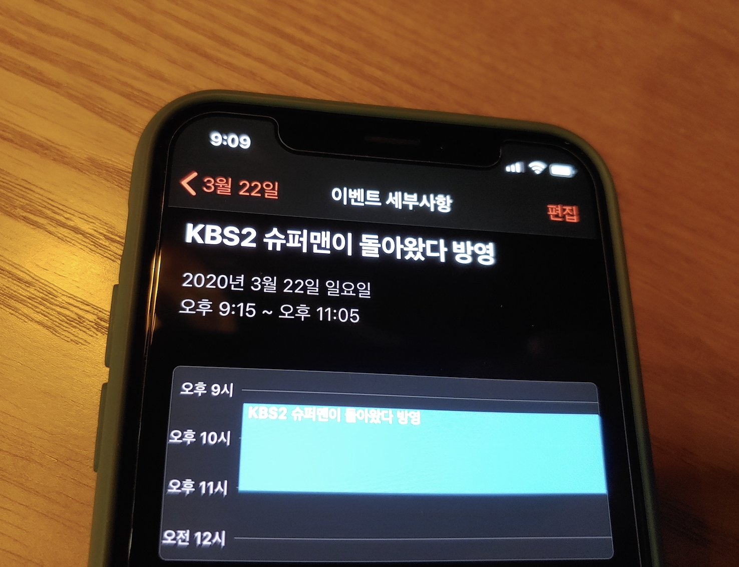 [사진 = 2020년 3월 22일 KBS2 슈퍼맨이 돌아왔다 방영 예정이다. 사진은 글쓴이 스마트폰 달력이며 2020년 3월 22일을 가리킨다. (C) 나이스블루]