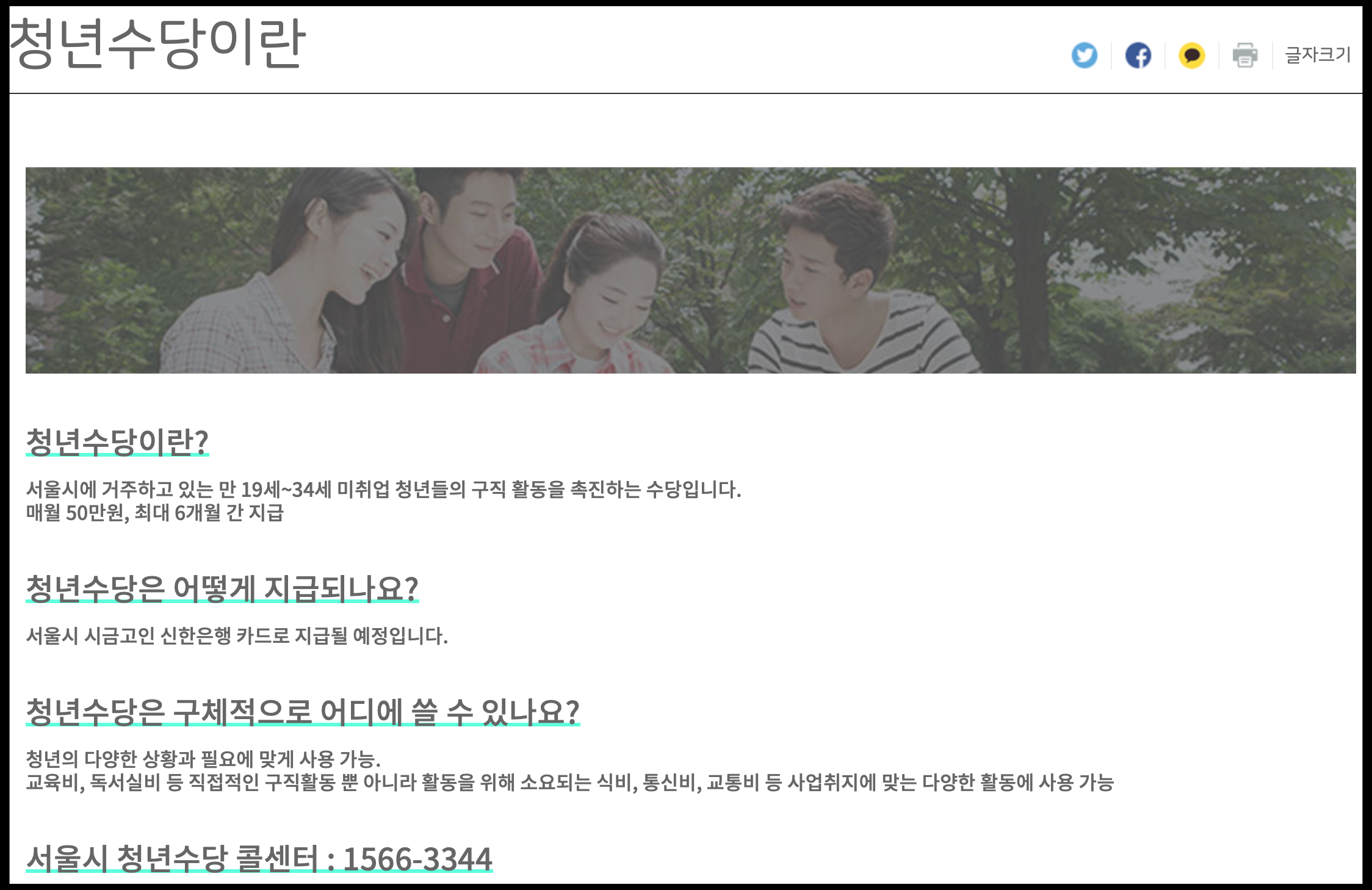 [관련 글(내 손안에 서울)] 청년수당 지원 대상자 30일부터 접수... 월 50만원 6개월