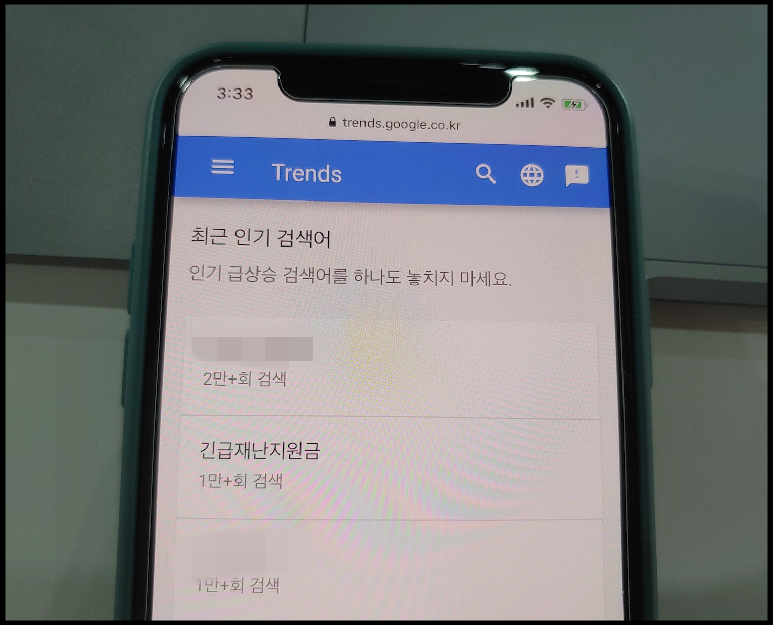 [사진 = 구글 트렌드에서는 최근 인기 검색어로서 긴급재난지원금이 떴습니다. 문재인 대통령의 긴급재난지원금 지급 결정에 주목하는 사람이 많습니다. 한국에서 거주하는 국민 70%가 혜택을 받을 수 있는 기회이기 때문입니다. 긴급재난지원금 1인당 100만원 또는 전국민 100만원 지급 여부를 주목하는 분들도 많았으나 실제로는 4인 가족 기준 가구 당 100만원 지급으로 결정됐습니다. (C) 구글 트렌드]