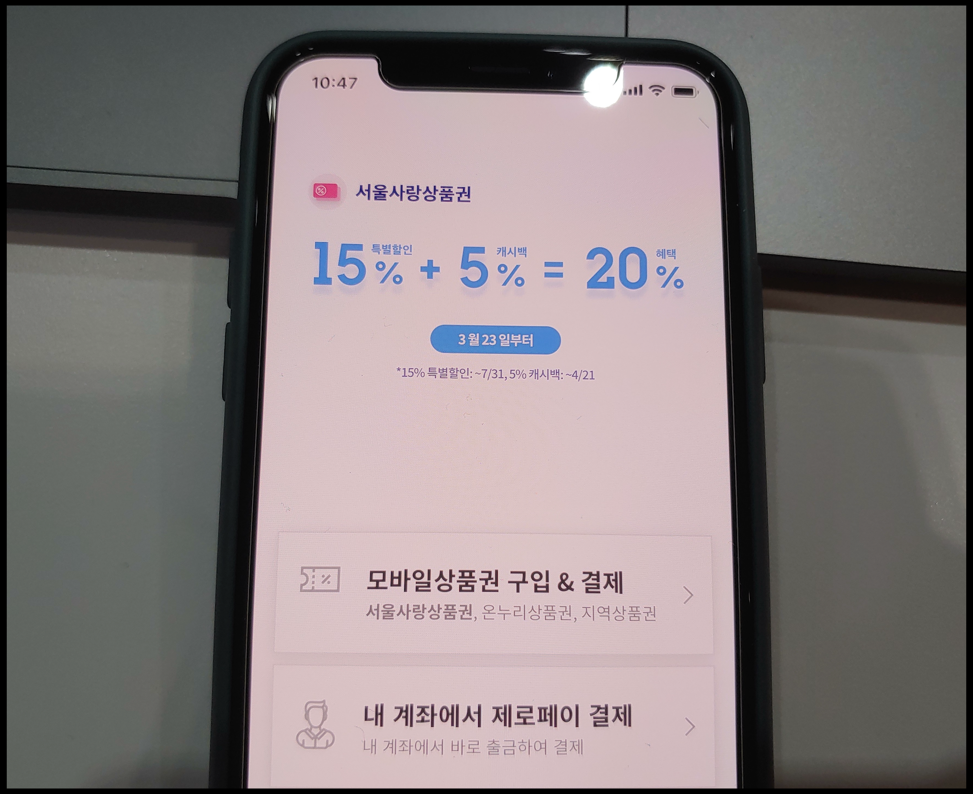 최근에는 서울시가 지난달 23일부터 서울사랑상품권 15% 할인 판매했는데 4월 1일에 이르러 500억 원을 모두 쓰면서 800억 원까지 연장하는 할인 판매를 추가 진행하기로 결정했습니다. 이는 서울사랑상품권 구매 및 할인 혜택 받으려는 사람이 얼마나 많은지 알 수 있습니다. 현재 서울사랑상품권 이용할 경우 기존 15% 할인에 캐시백 5%까지 받을 수 있어 생활비 절약에 있어서 유리합니다. 따라서 서울시 재난긴급생활비를 서울사랑상품권으로 받을 경우 생활비를 아낄 수 있을 뿐만 아니라 코로나19로 얼어붙은 골목상권이 침체에서 벗어나는 계기가 될 것으로 보입니다.