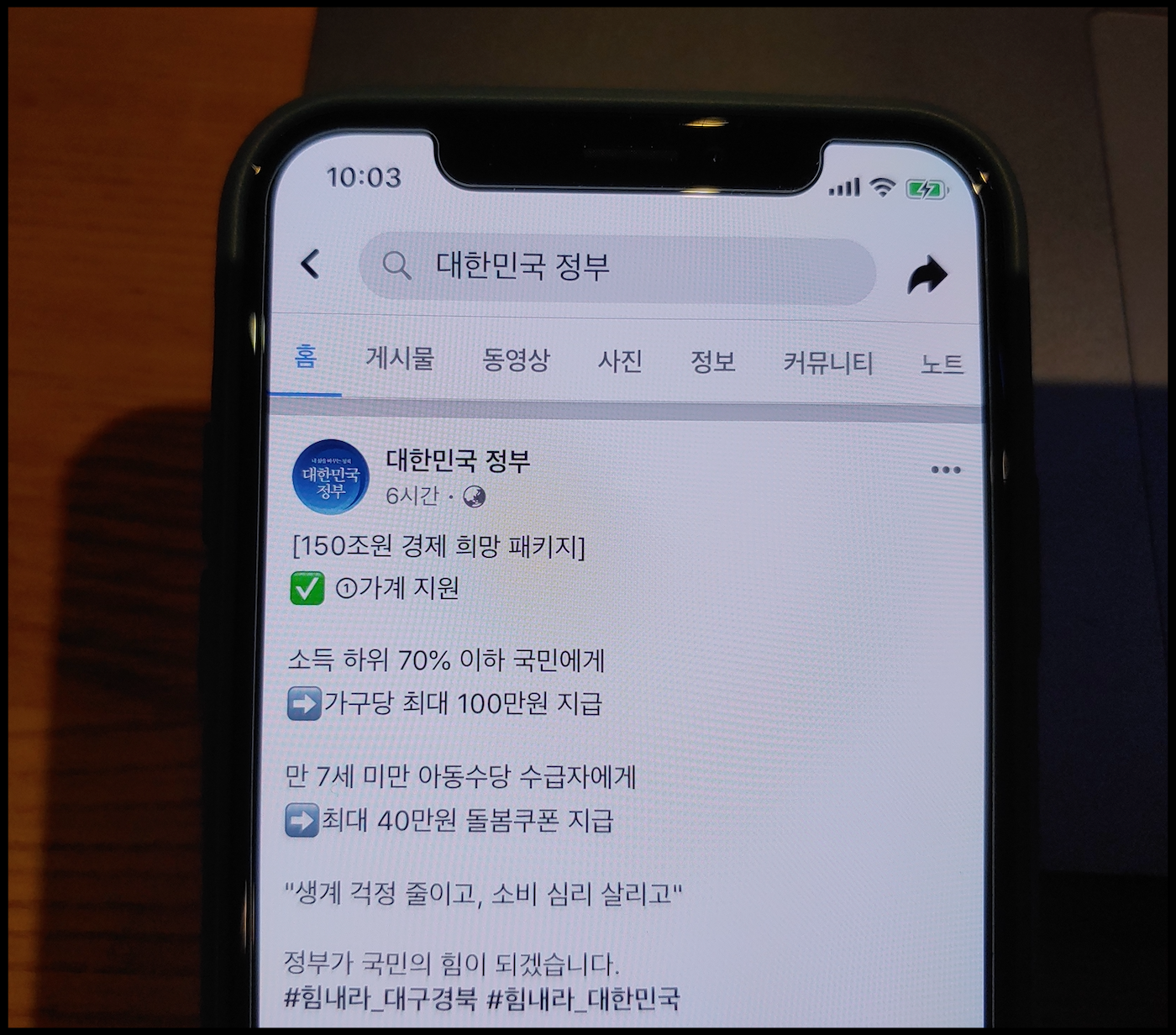[사진 = 대한민국 정부 공식 페이스북에서는 150조원 경제 희망 패키지로 꼽히는 가계지원에 대한 언급을 했습니다. '국민적인 관심사가 된' 정부의 긴급재난지원금을 통해서 소득 하위 70% 이하 국민을 대상으로 가구당 최대 100만원 지급된다고 언급했습니다. 그와 더불어 만 7세 미만 아동수당 수급자를 대상으로 아동돌봄쿠폰 최대 40만원 지급(돌봄쿠폰 형태)된다고 언급했습니다. 돌봄쿠폰은 상품권 등으로 지급 예정입니다. (C) 대한민국 정부 공식 페이스북]