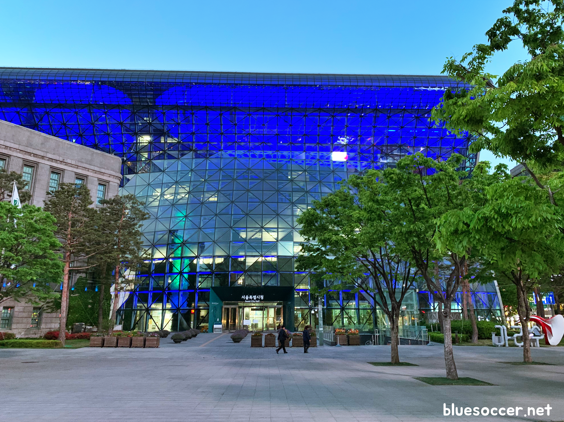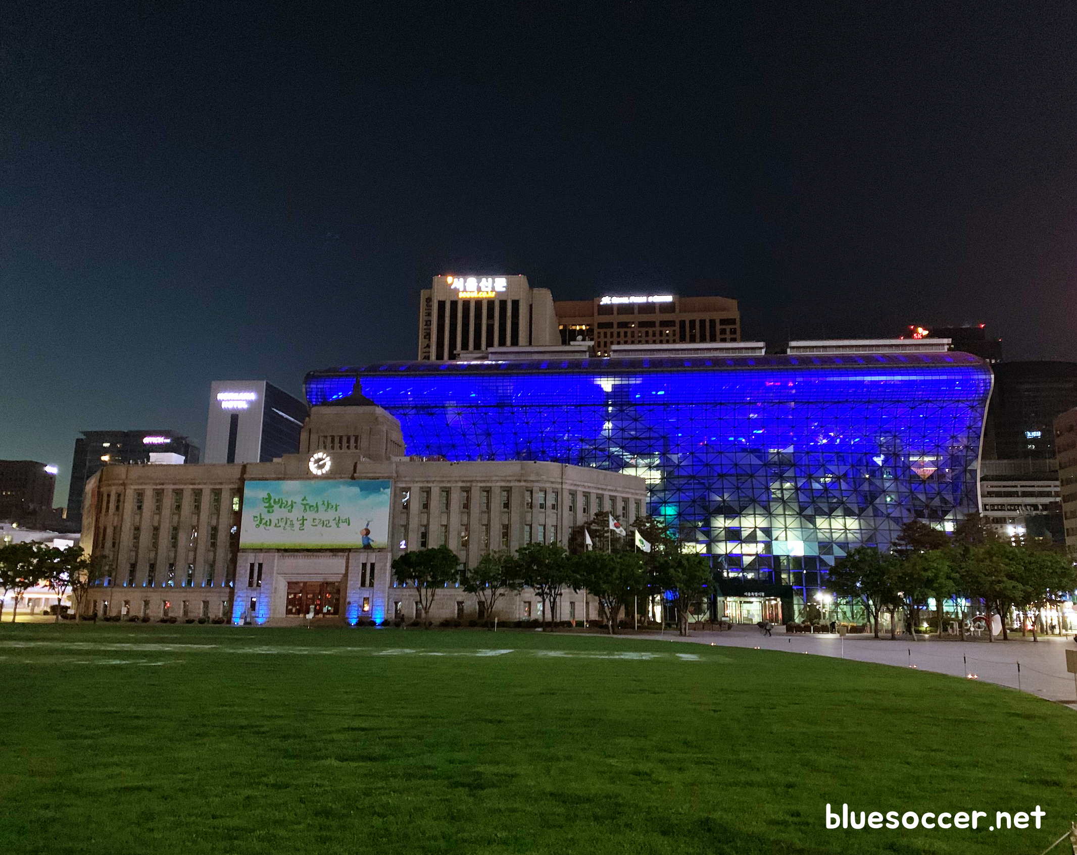 그럼에도 서울월드컵경기장이 블루라이트 캠페인 참여하는 모습을 보며 사람들에게 즐거움을 안겨주는 것 같습니다. 그동안 서울월드컵경기장에서 펼쳐지는 축구 경기를 보면서 환호했던 사람이 많았을텐데(한편으로는 한국 대표팀이 고전할 때 답답함을 느꼈던 경우도 있겠지만) 경기장 지붕에 푸른빛이 들어온 모습을 통해 사람들을 사로잡는 매력이 넘쳐납니다. 2002년 한일 월드컵 개막식이자 4강 한국 대 독일 맞대결이 펼쳐진 경기장에서 평소와 다른 모습을 바라볼 수 있으니 말입니다. 블루라이트 캠페인이 전개되는 몇몇 서울 명소들을 둘러보니 서울의 새로운 매력을 접할 수 있었습니다.
