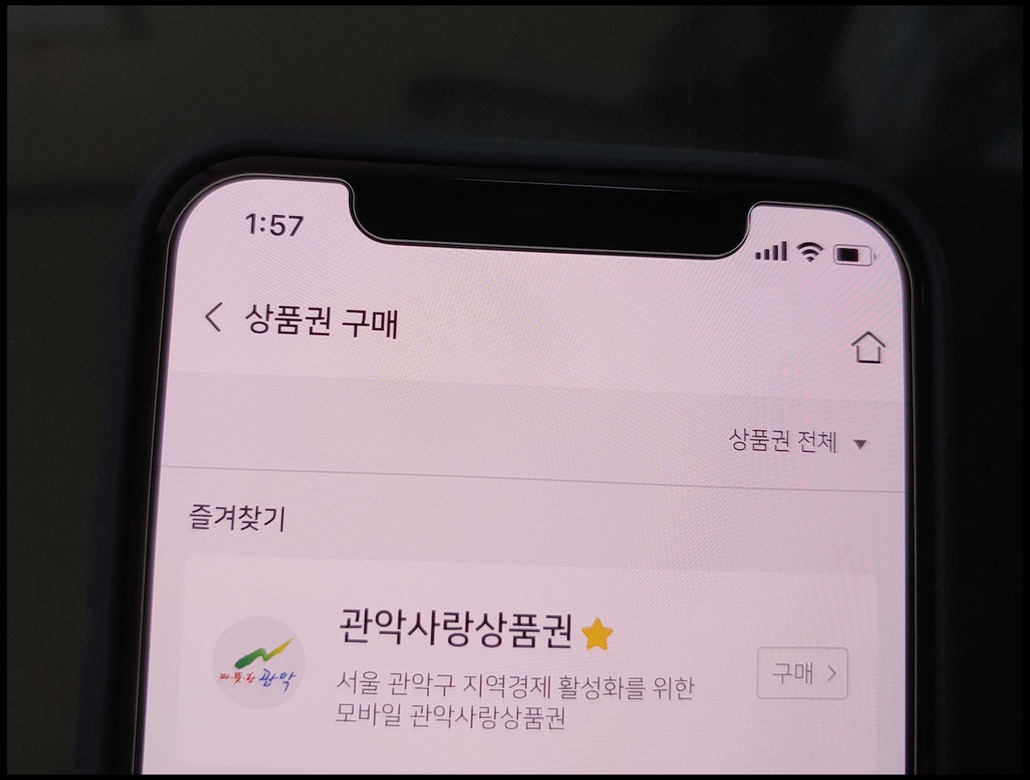 드디어 관악사랑상품권 구매 완료했습니다. 5만 원에서 할인된 5천 원은 할인 지원금으로 표시됩니다.