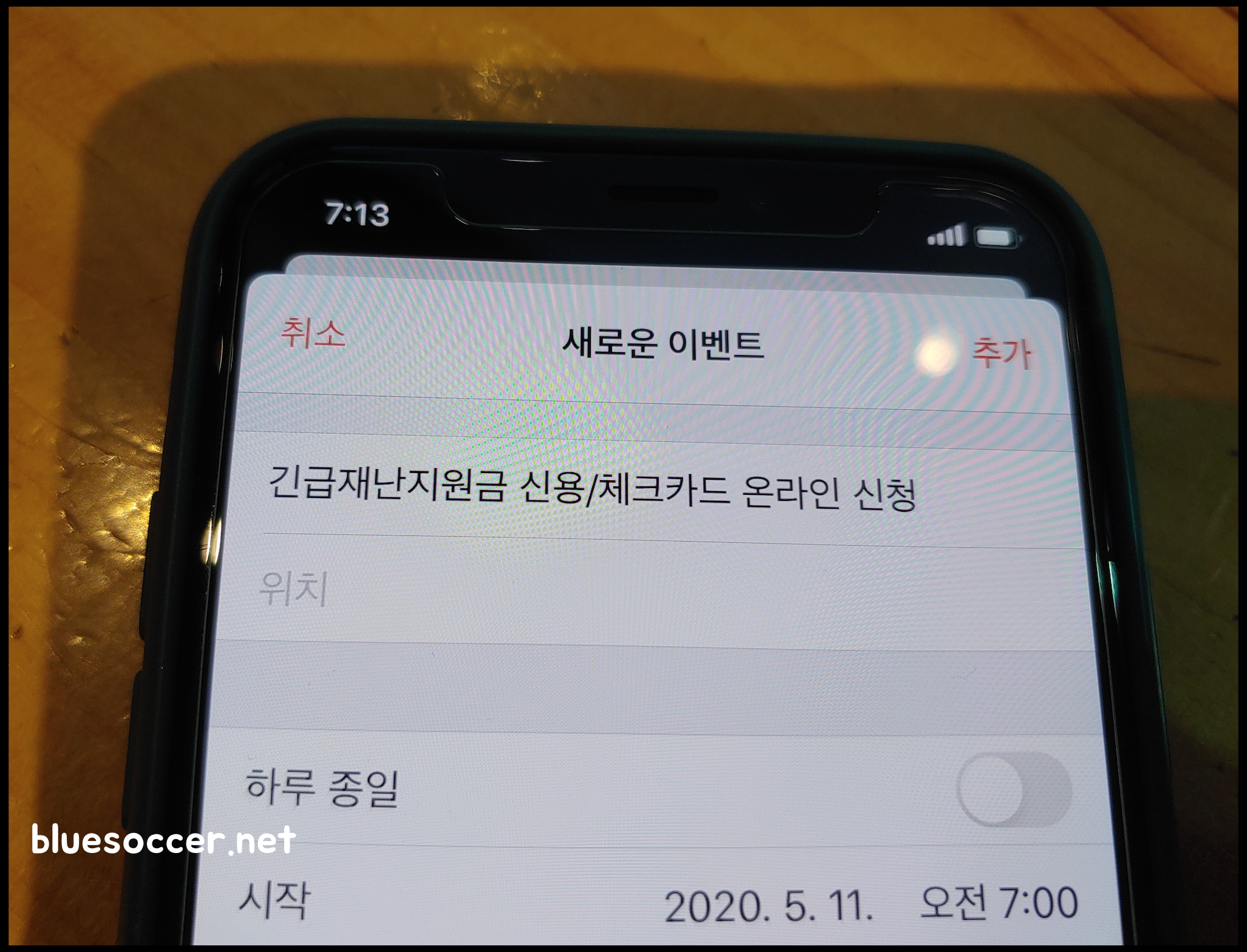 [사진 = 5월 11일 오전 7시부터 긴급재난지원금 신용카드 및 체크카드 온라인 신청 시작됐습니다. 사진은 저의 스마트폰 달력입니다. (C) 나이스블루]