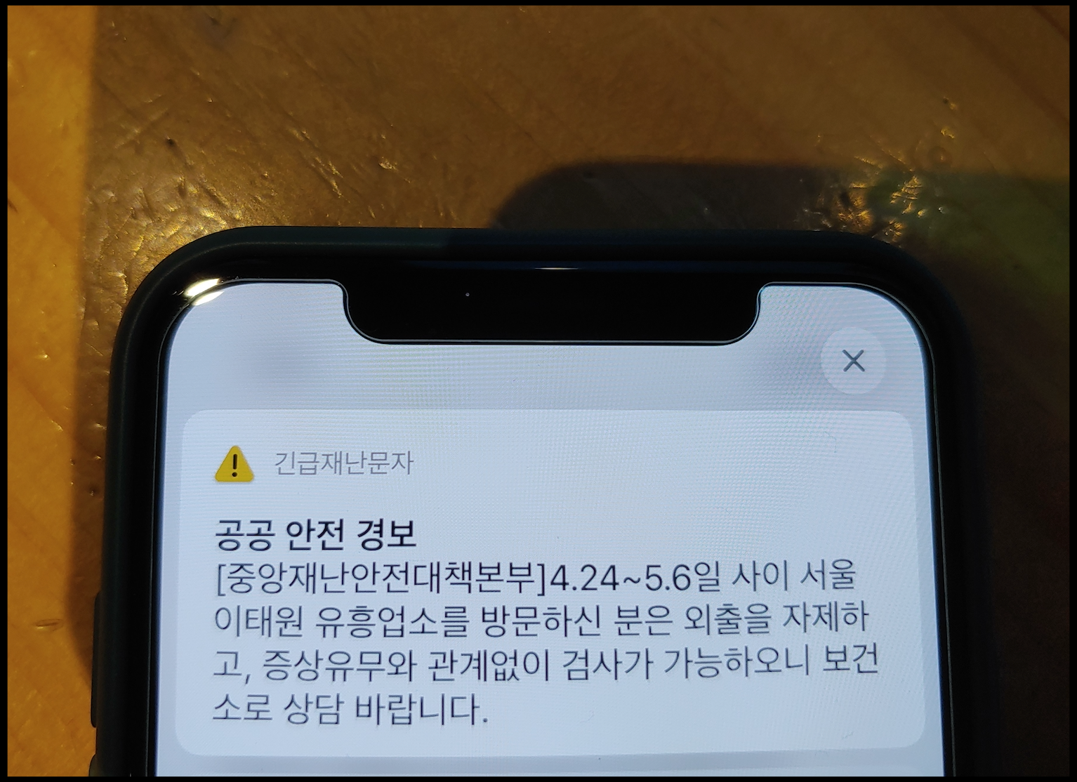 [사진 = 중앙재난안전대책본부가 보낸 긴급재난문자에 따르면 서울 이태원과 관련된 내용이 있습니다. 여기에 해당하는 분은 외출 자제해달라는 언급이 있습니다. 그와 더불어 증상유무와 관계없이 검사가 가능하기 때문에 보건소로 상당 바란다고 보냈습니다. (C) 나이스블루]
