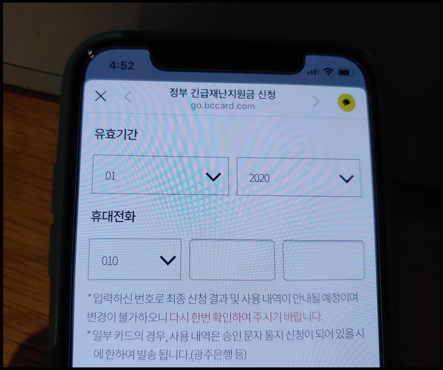 [사진 = 비씨카드 공식 홈페이지에서는 정부 긴급재난지원금 신청 가능합니다. 세대주 생년월일, 카드번호, (카드) 유효기간 및 휴대전화 입력하시면 됩니다. (C) 비씨카드 공식 홈페이지]