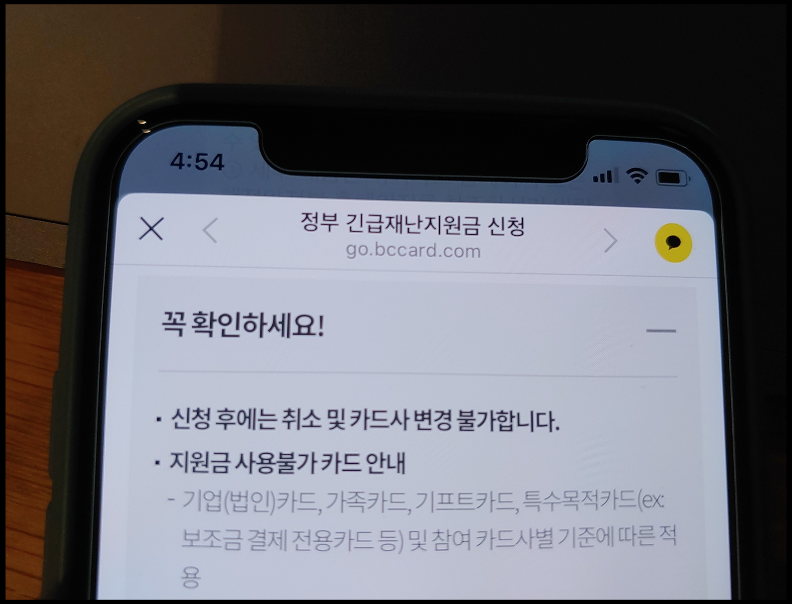 [사진 = 저 같은 경우 지난 11일 카카오톡을 통해 비씨카드 긴급 재난지원금 신청 안내와 관련된 메시지를 받았습니다. 저는 IBK기업은행 체크카드 소지하는 중인데 그 카드에 비씨카드 로고가 새겨졌습니다. IBK기업은행은 비씨카드의 BC 회원사입니다. IBK기업은행 긴급재난지원금 신청 관련하여 만약 해당 카드가 비씨카드와 연결되어 있다면 긴급 재난지원금 신청 가능한 것으로 보입니다. 저에게 카카오톡 메시지가 날아온 것을 봐도 말입니다. 만약 IBK기업은행 체크카드 또는 신용카드가 비씨카드와 연결되었는데 해당 카드를 일상생활에서 주로 쓰시는 분들 중에는 비씨카드 재난지원금 신청 염두하는 분들이 있을 것으로 예상됩니다. (C) 나이스블루]
