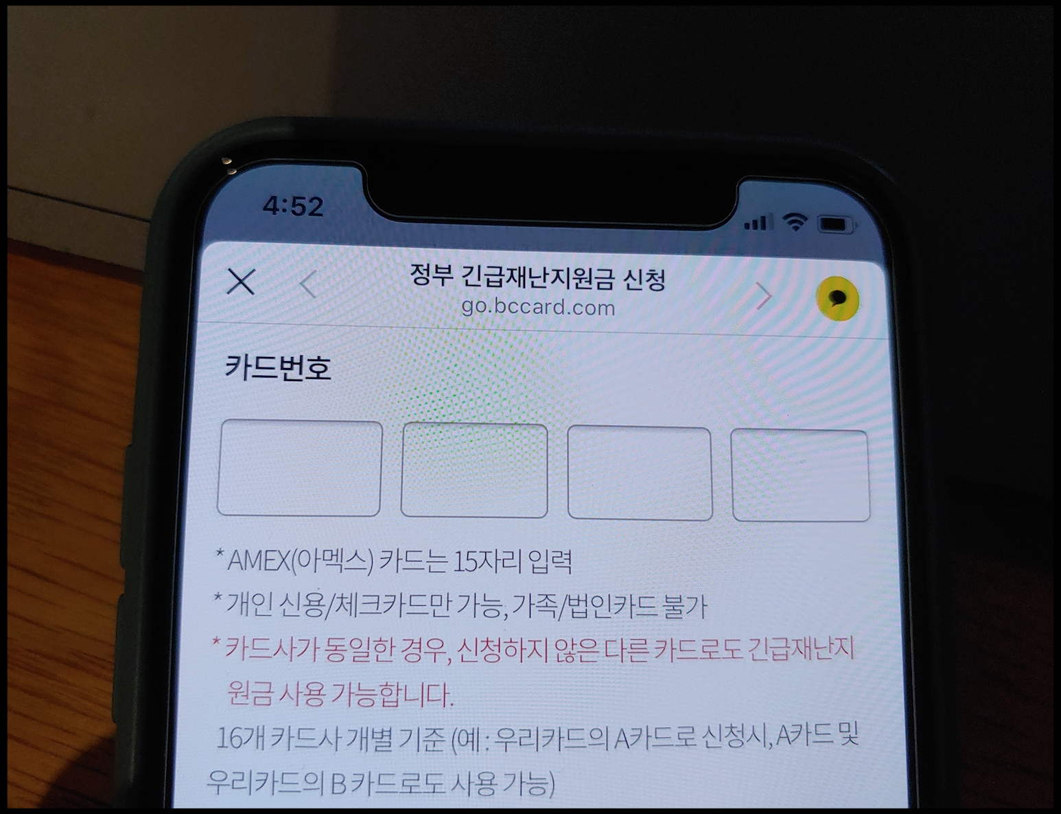 [사진 = 비씨카드 공식 홈페이지에서는 정부 긴급재난지원금 신청 가능합니다. 세대주 생년월일, 카드번호, (카드) 유효기간 및 휴대전화 입력하시면 됩니다. (C) 비씨카드 공식 홈페이지]