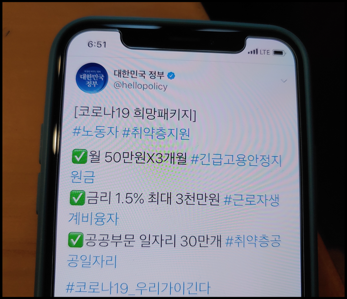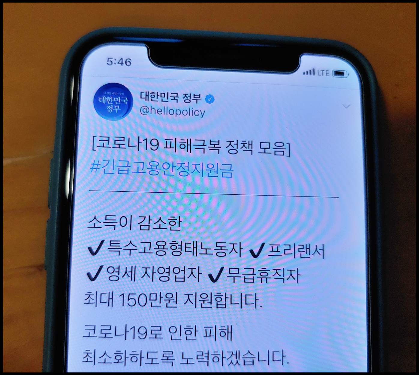 [사진 = 대한민국 정부 공식 트위터는 5월 1일 코로나19 관련 게시물을 통해 긴급고용안정지원금, 취약층공공일자리 등을 알리는 게시물을 올렸습니다. 긴급고용안정지원금의 경우 그동안 지급이 계획되어 있었습니다. (C) 대한민국 정부 공식 트위터]
